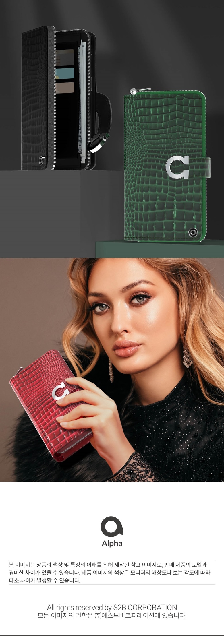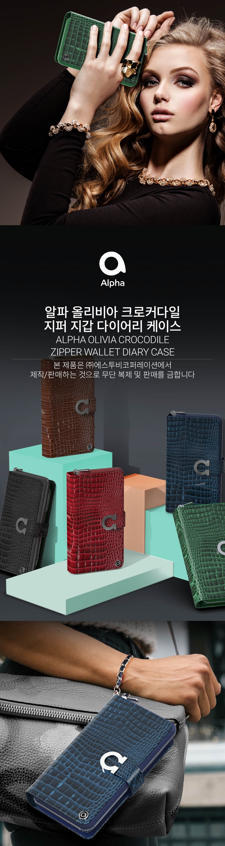[S2B] Alpha Olivia Crocodile Zipper Wallet Diary Case - Smartphone Bumper Camera Guard iPhone Galaxy Case - Made in Korea
