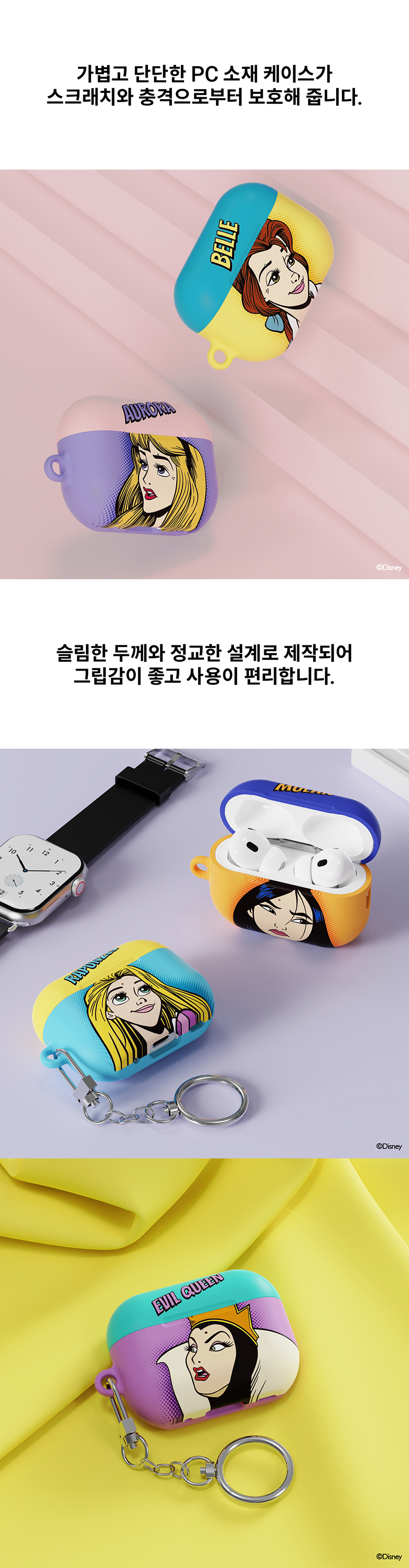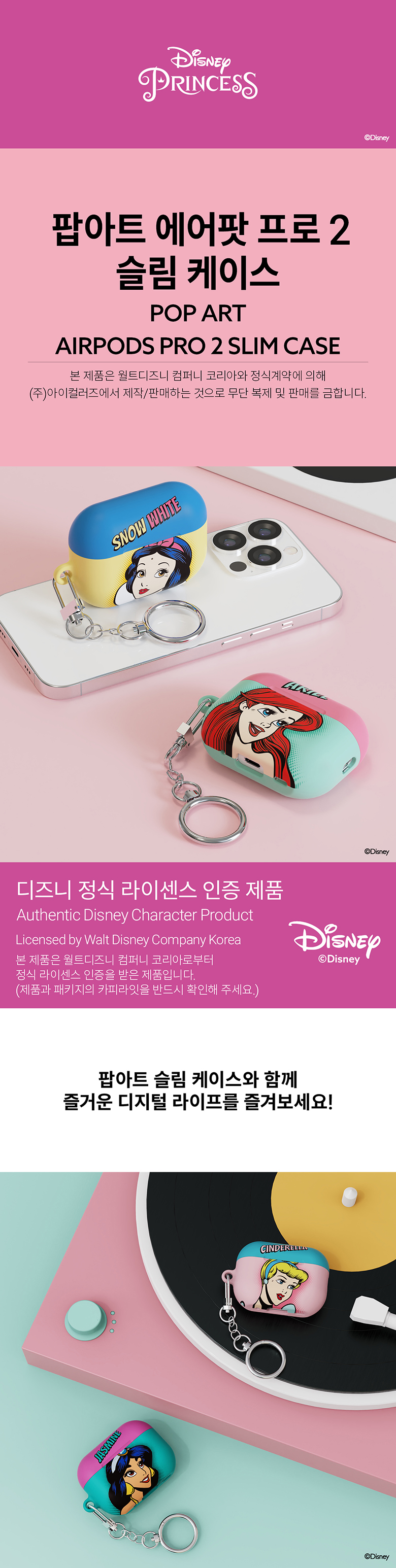 [S2B] Disney Princess Pop Art AirPods Pro 2 Slim Case-AirPods Case, AirPods Keyring, Disney AirPods Case-Made in Korea