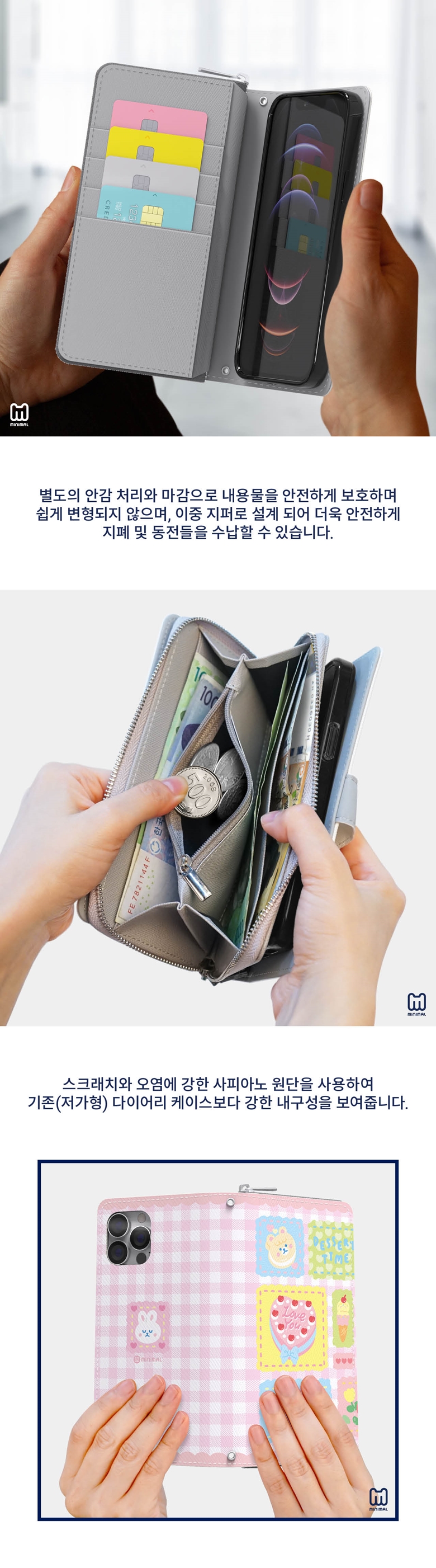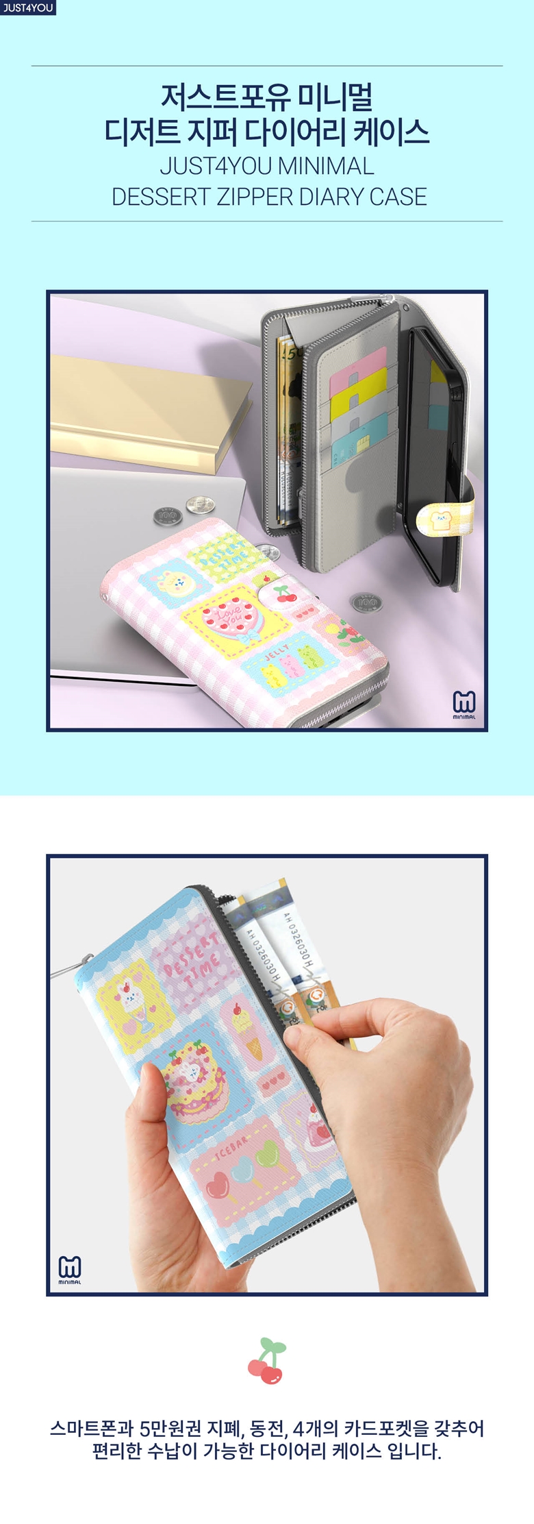 [S2B] Just 4U Minimal Dessert Zipper Diary Case for iPhone _ Wallet-type phone bumper for banknotes, coins, and cards,Full Body Protective Cover _ Made in Korea