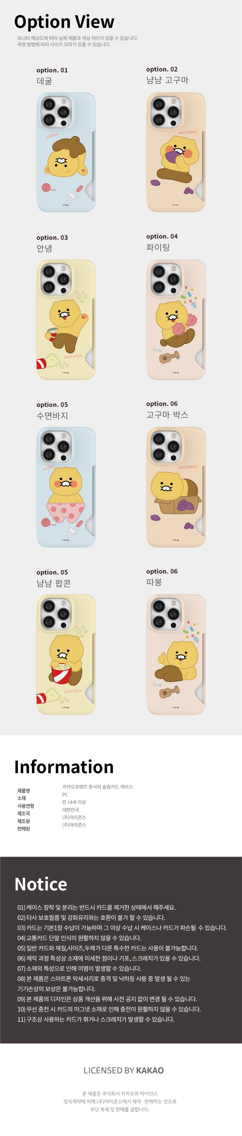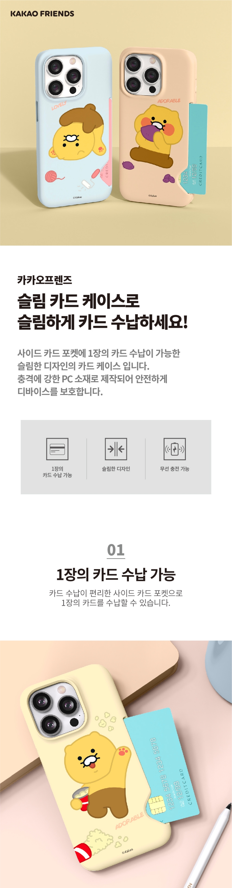 [S2B] Kakao Friends CHOONSIK Slim Card Case-Smartphone Wallet Storage Camera iPhone Galaxy Case-Made in Korea
