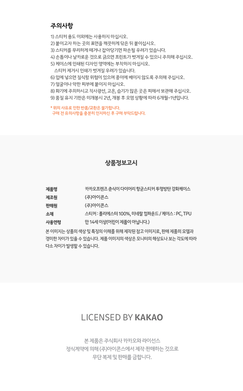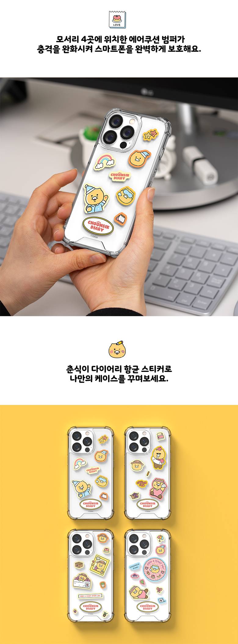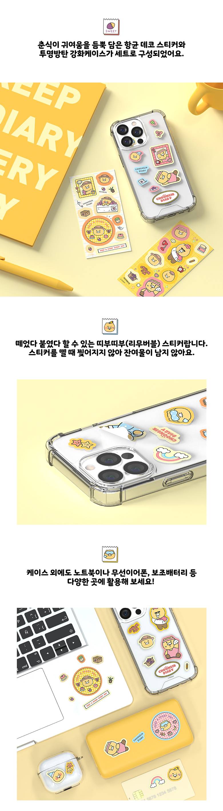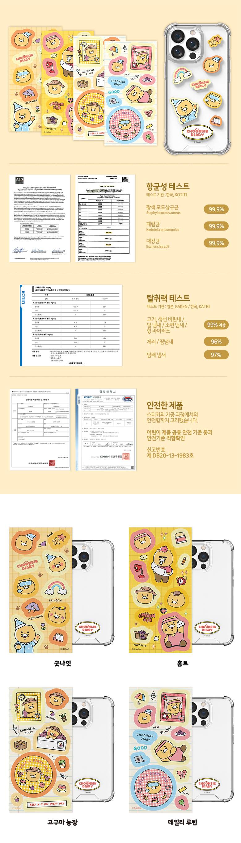 [S2B] Kakao Friends CHOONSIK Diary Antibacterial Sticker Transparent Bulletproof Reinforcement Case-Transparent Case, Bumper Case, Air Cushion - Made in Korea