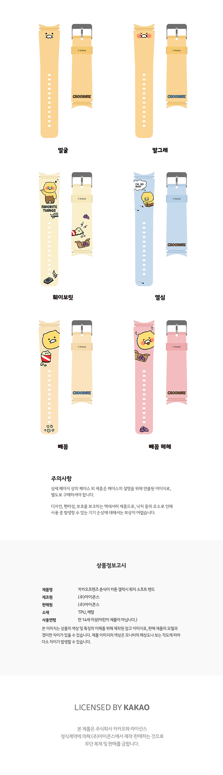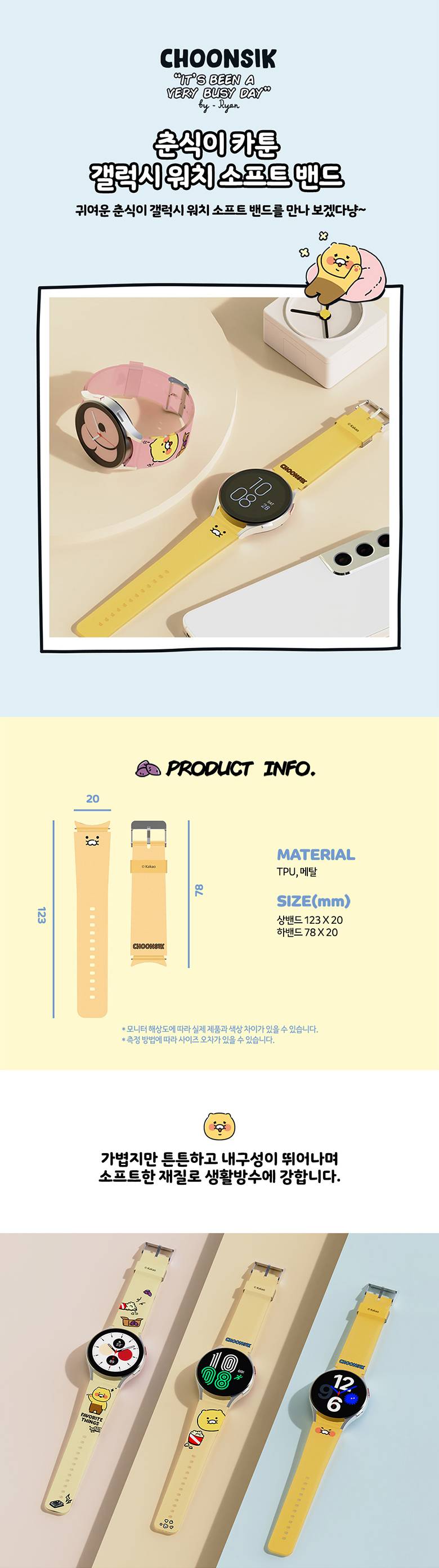 [S2B] Kakao Friends CHOONSIK Galaxy Watch Soft Band - Watchband Accessories Strap Waterproof Sport Band - Made in Korea