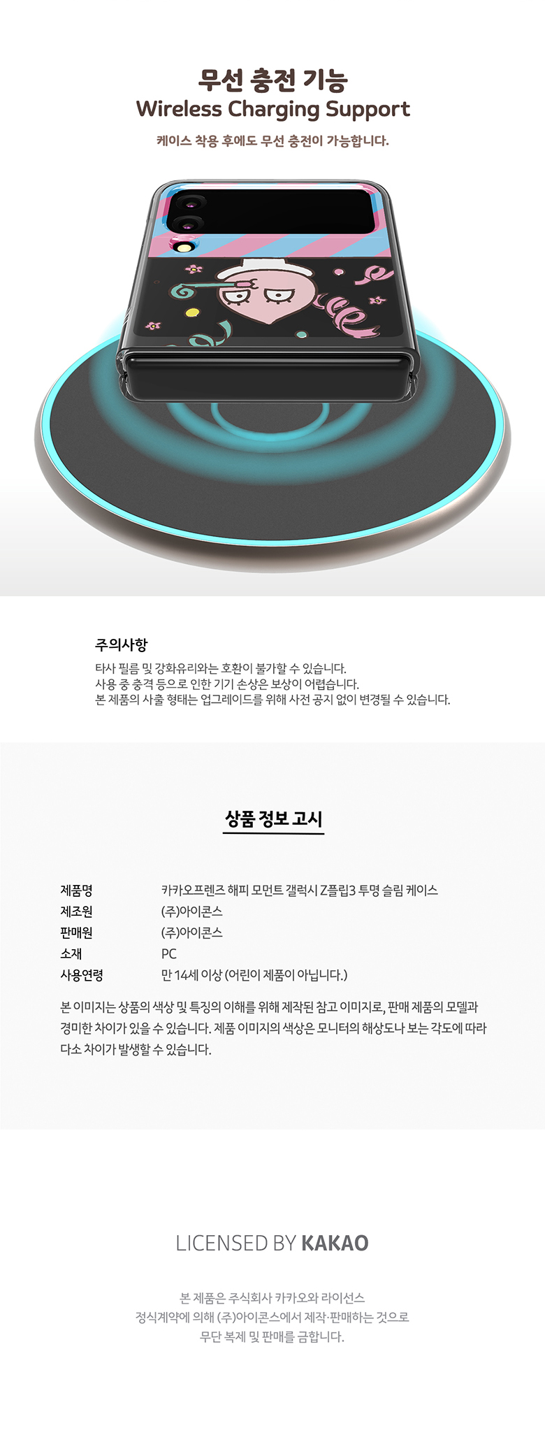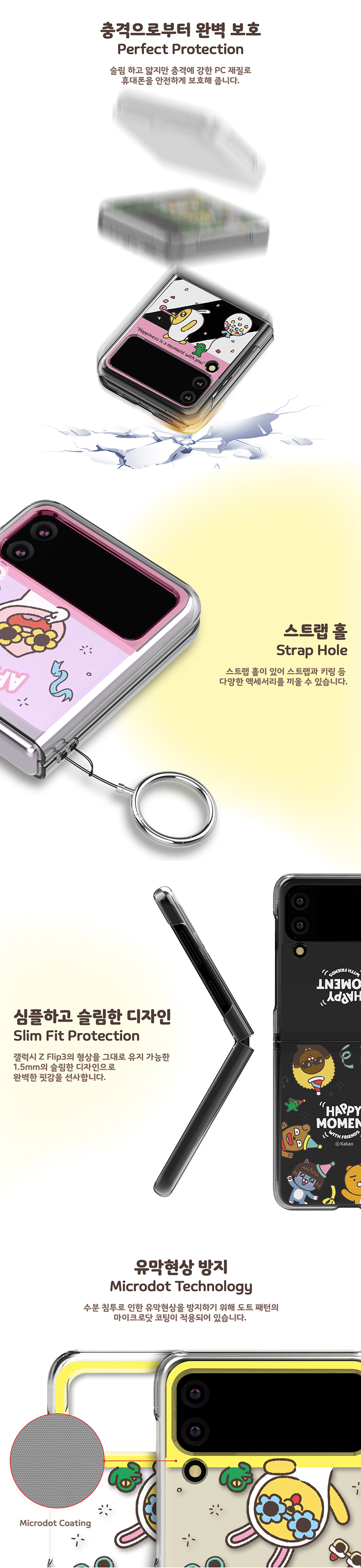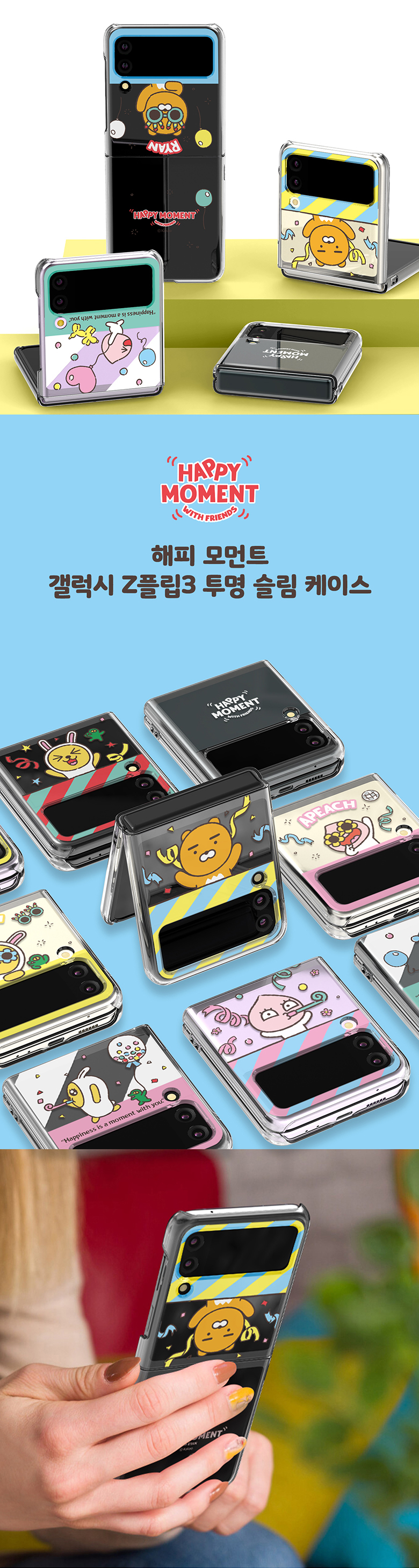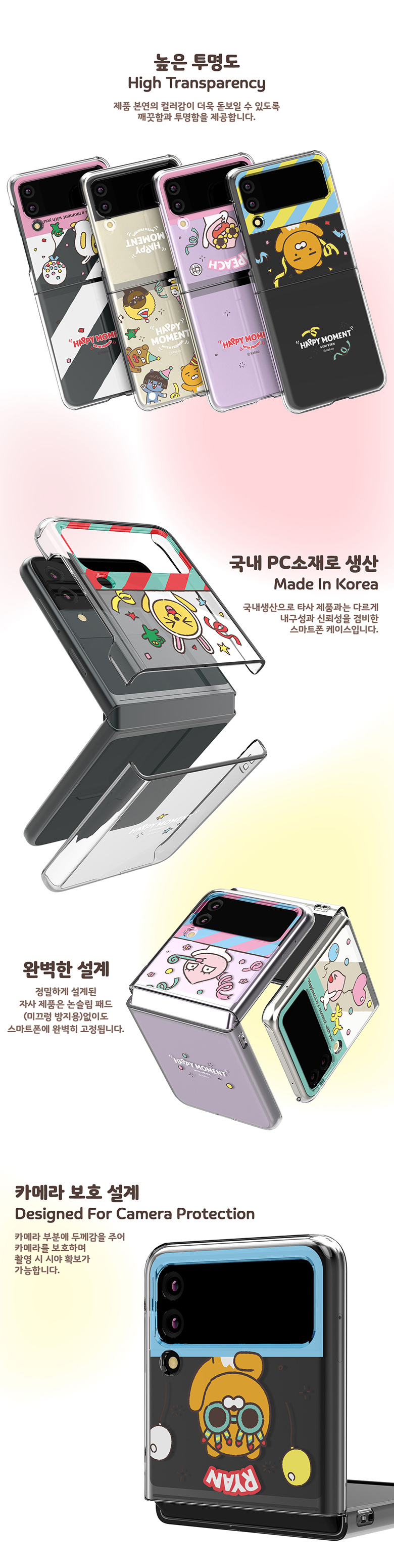 [S2B] Kakao Friends Happy Moment Galaxy Z Flip 3 Transparent Slim Case _ Kakao Friends' character, Wireless charging _ Made in Korea
