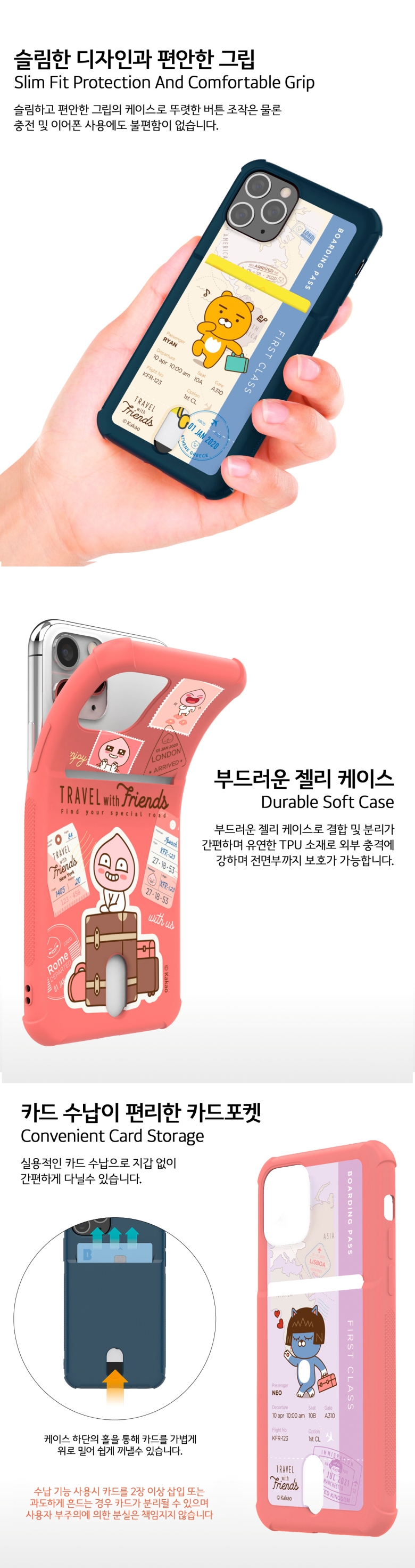 [S2B] Kakao Friends Travel Color Bulletproof Card Case - Jelly Case, Slim Case, Card Case, Bumper Case-Made in Korea