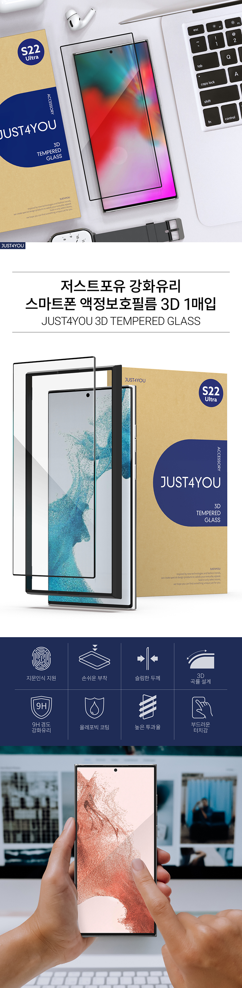 [S2B]Just For You Screen Protector 3D tempered glass 1sheets _ Galaxy S22 Ultra_ Made in Korea