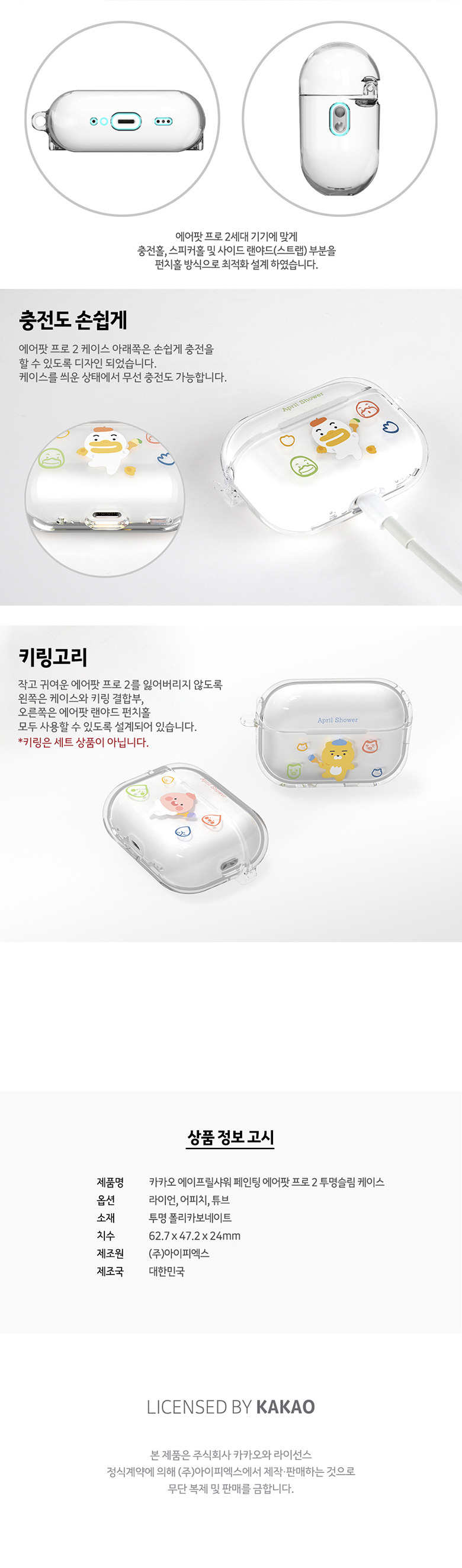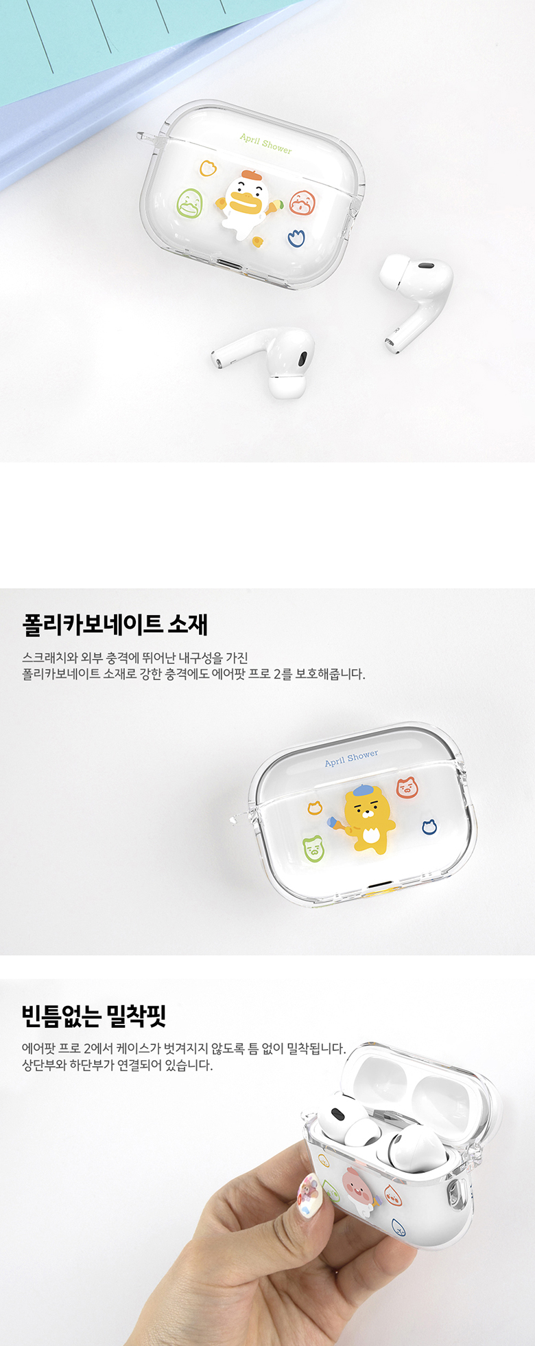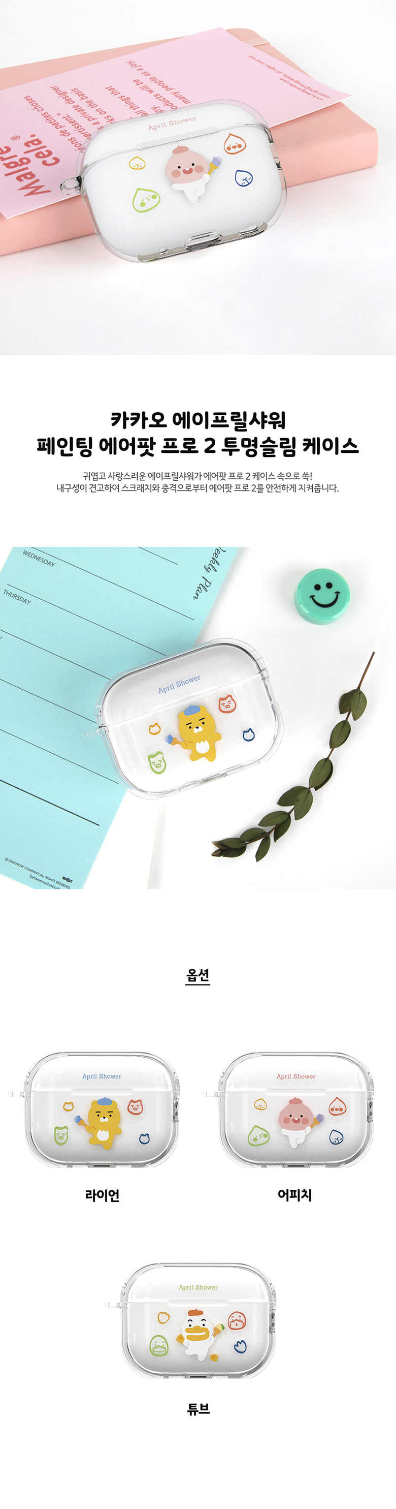 [S2B] KAKAOFRIENDS April Shower Painting AirPods Pro2 Clear Slim case-Apple Bluetooth Earphone All-in-One Case-Made in Korea