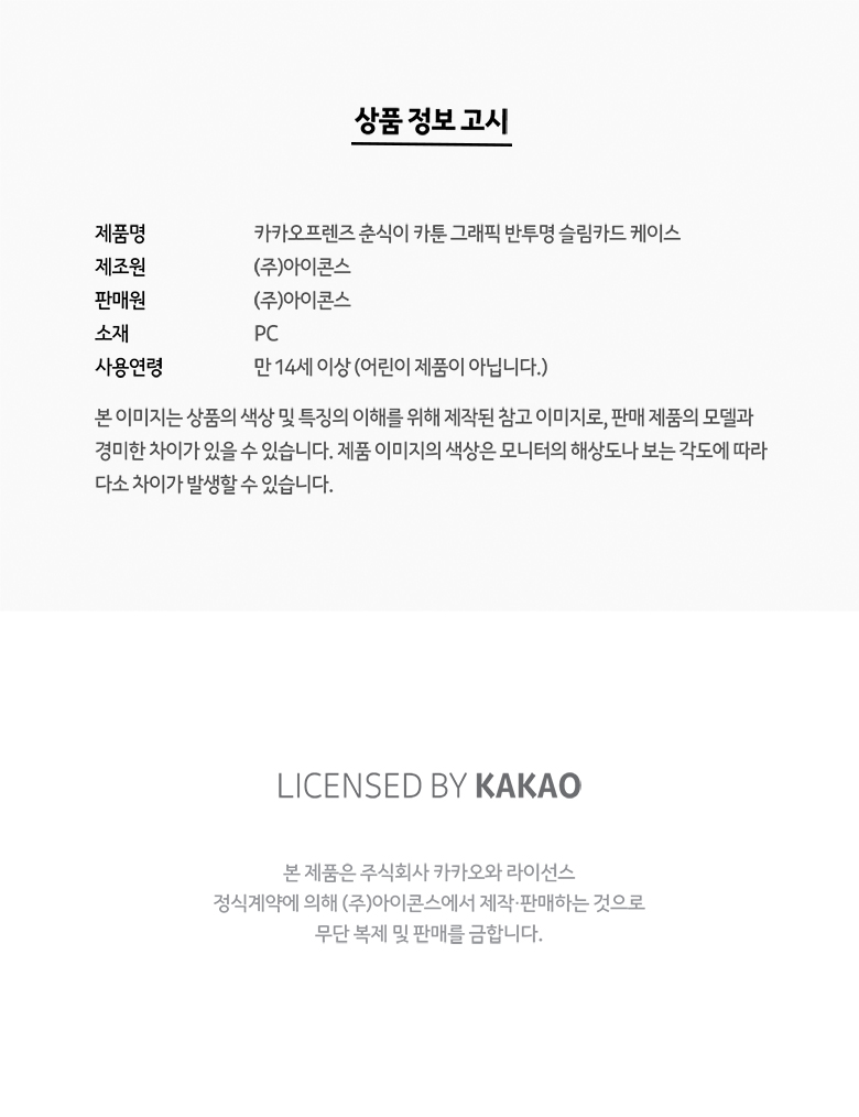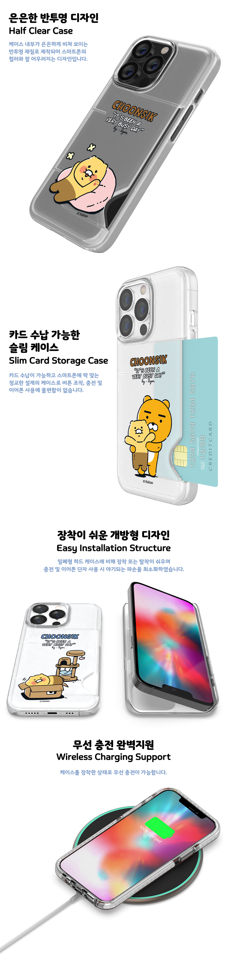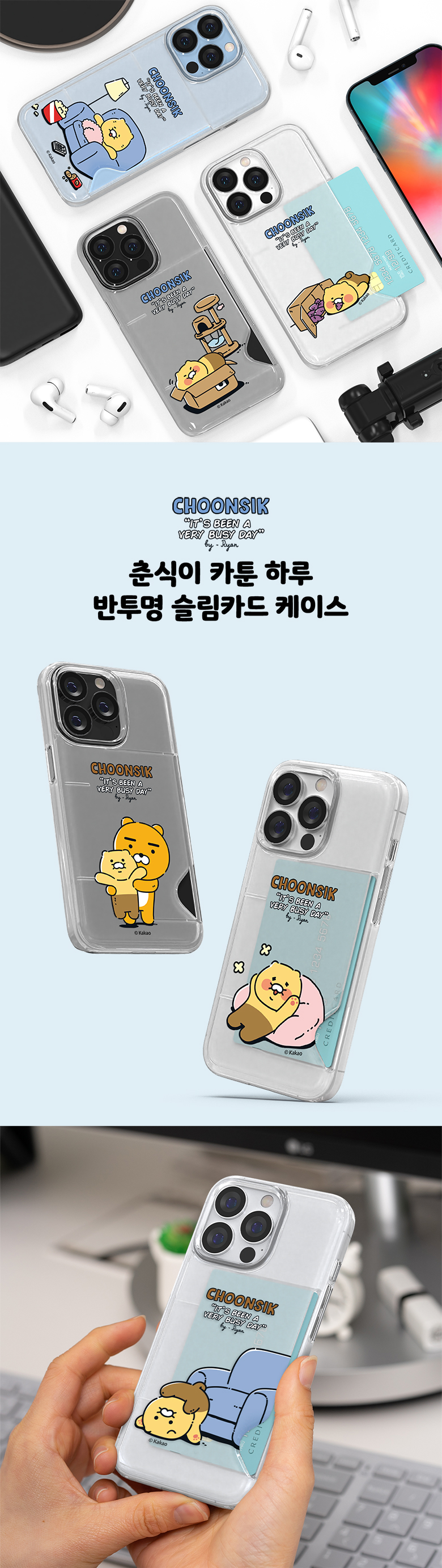 [S2B]Kakao Friends Choonsik's Cartoon Day Translucent Slim Card Case_ Kakao Friends character, Slim and convenient phone bumper, Made in Korea