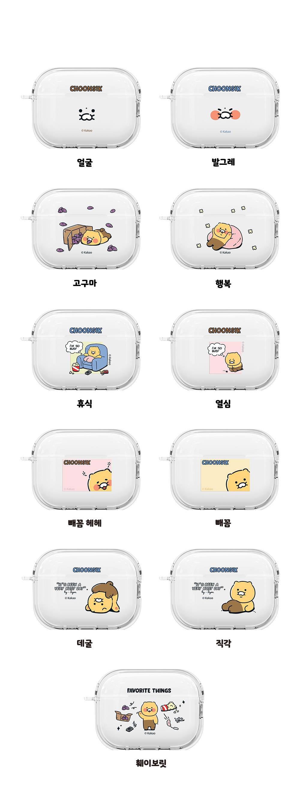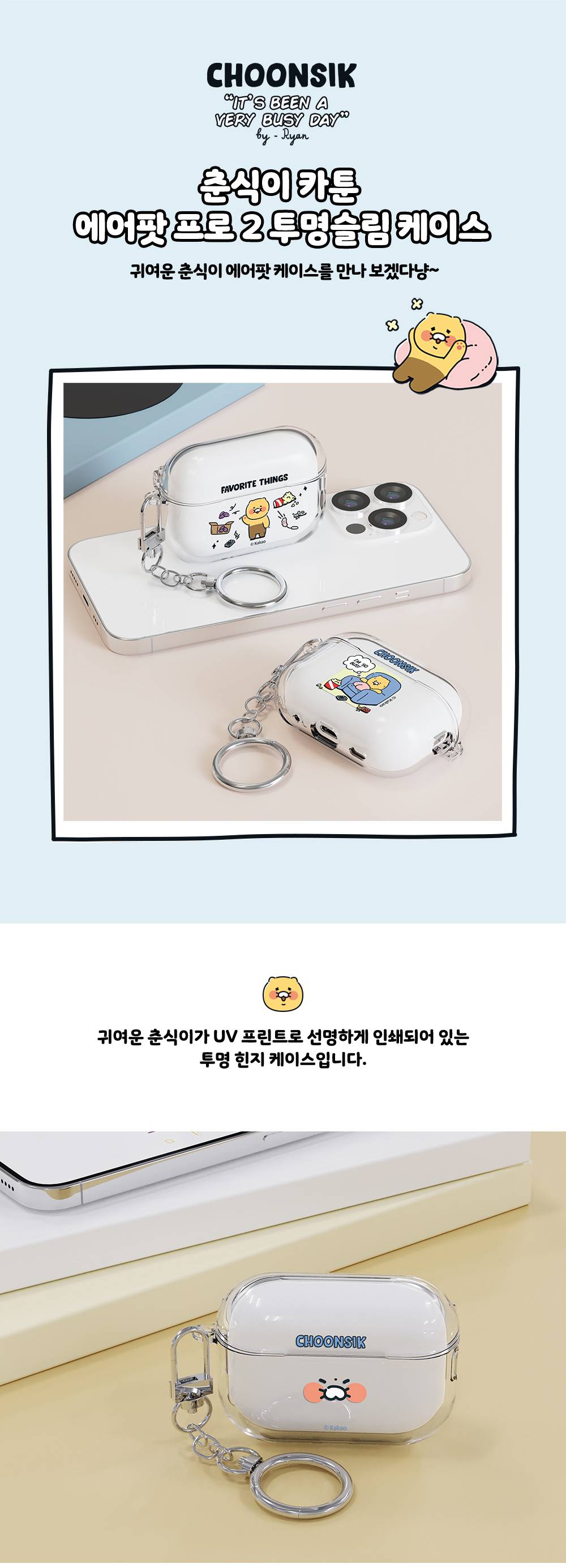 [S2B] KAKAOFRIENDS Choonsik Cartoon AirPods Pro2 Clear Slim Case - Apple Bluetooth Earphones All-in-One Case - Made in Korea
