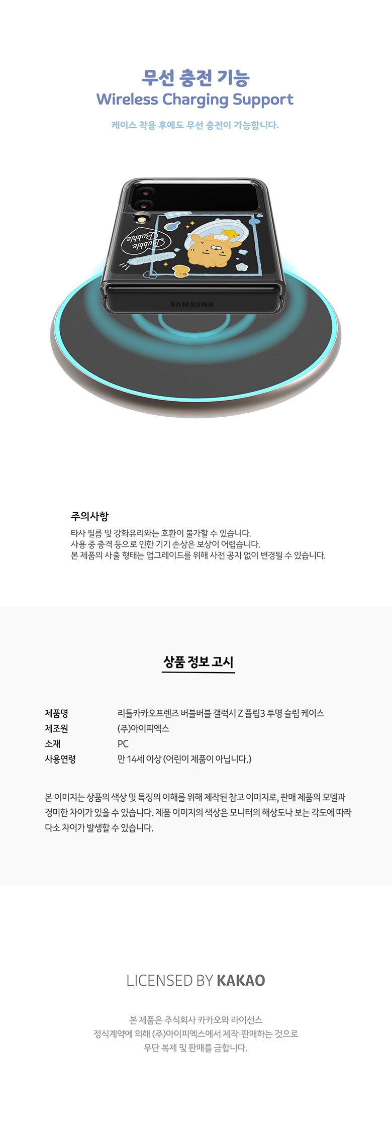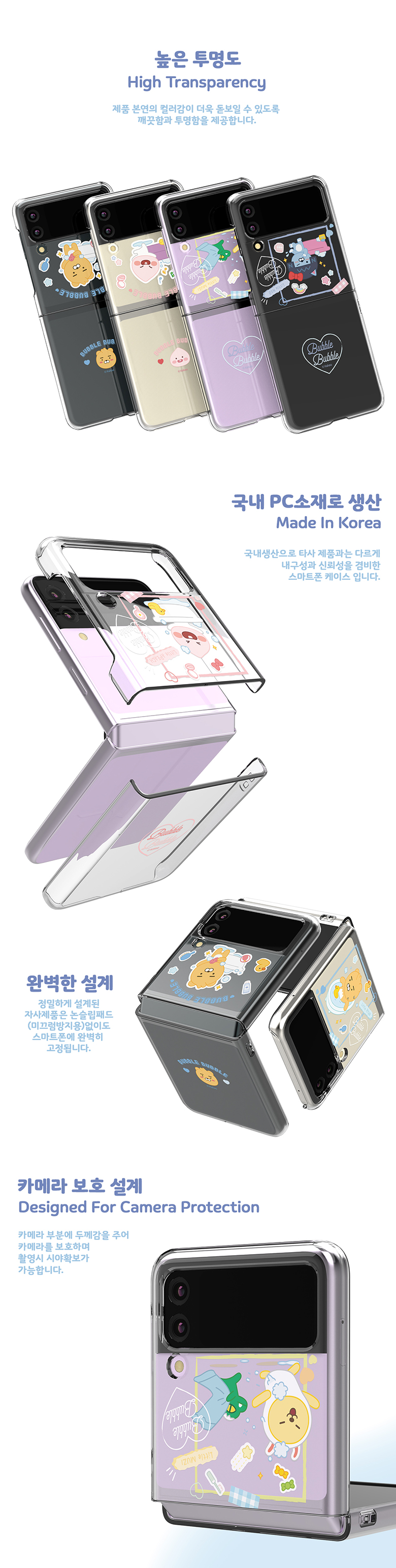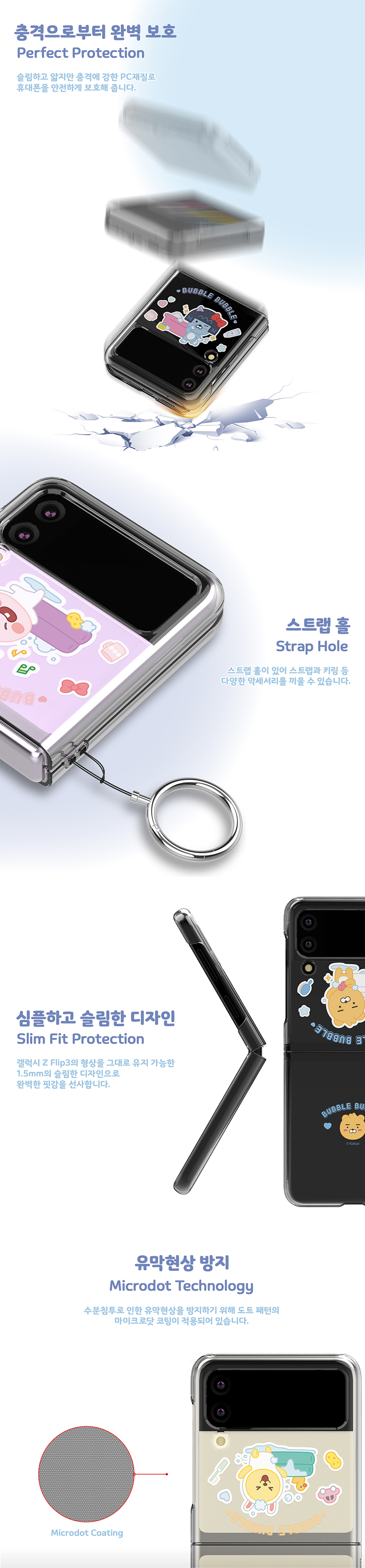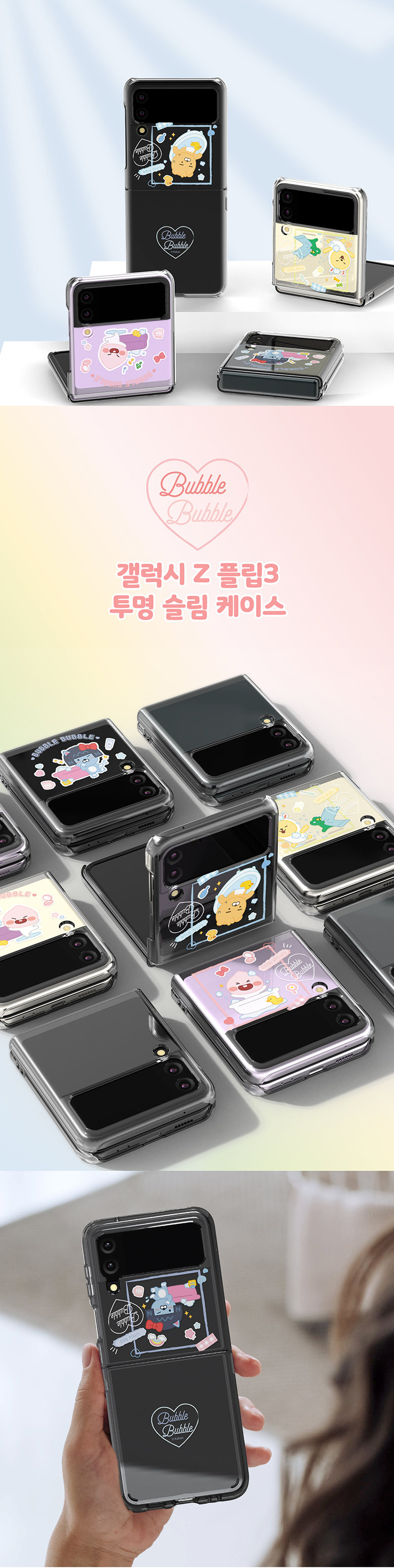 [S2B]Little Kakao Friends Bubble Bubble Z Flip3 Transparent Slim case _Kakao Friends' character for Galaxy Z Flip3 _Made in Korea