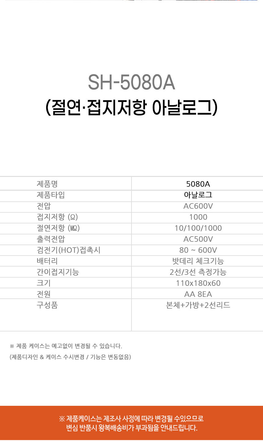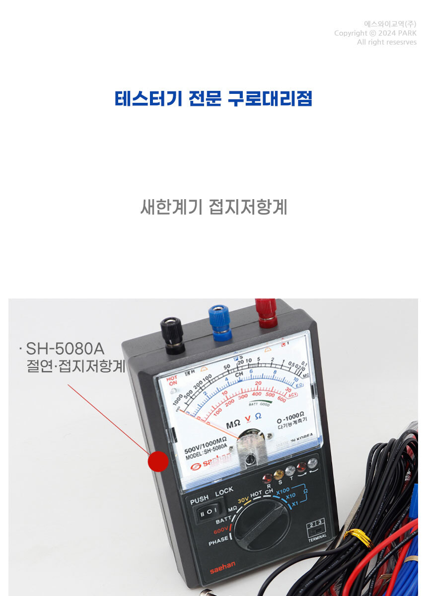 SAEHAN Analog Multi-function Insulation/Ground Tester SH-5080A, 2-wire measurement possible, Insulation resistance (MΩ) 10/100/1000, Ground resistance (Ω) 1000, AC600V, Output AC500V