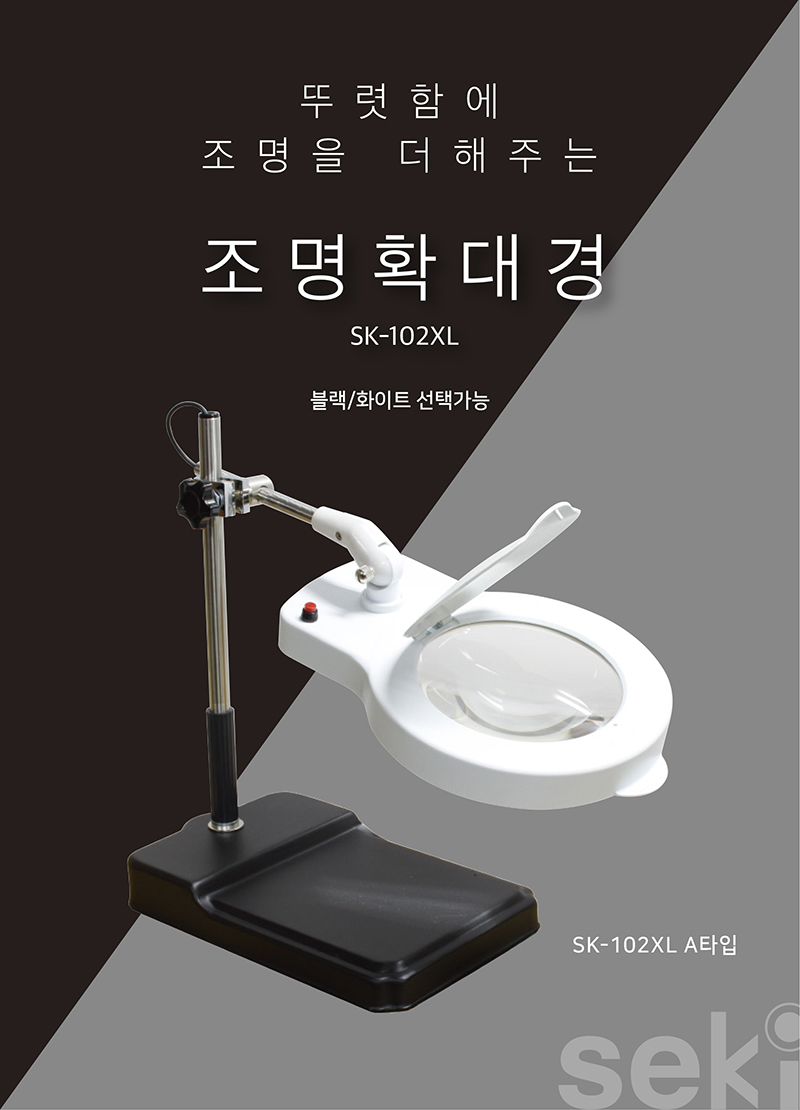 SEKI_OPTICAL 5X LED Illuminated Magnifying Glass SK-102XL-5X with 175mm Large Lens, Built-In Whie LED Lamp, Adjustable Joint Structure, and High-Tensile Spring