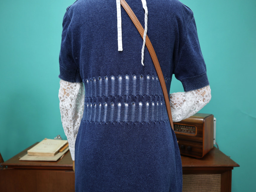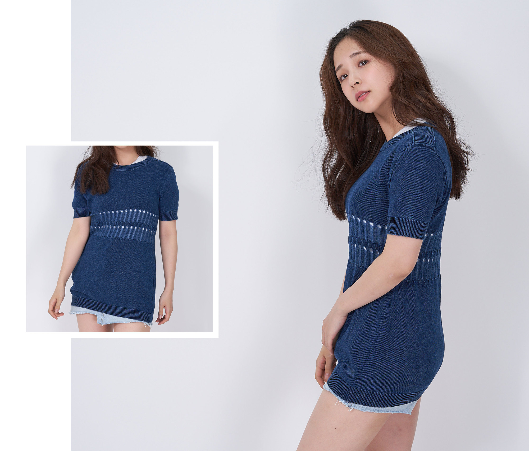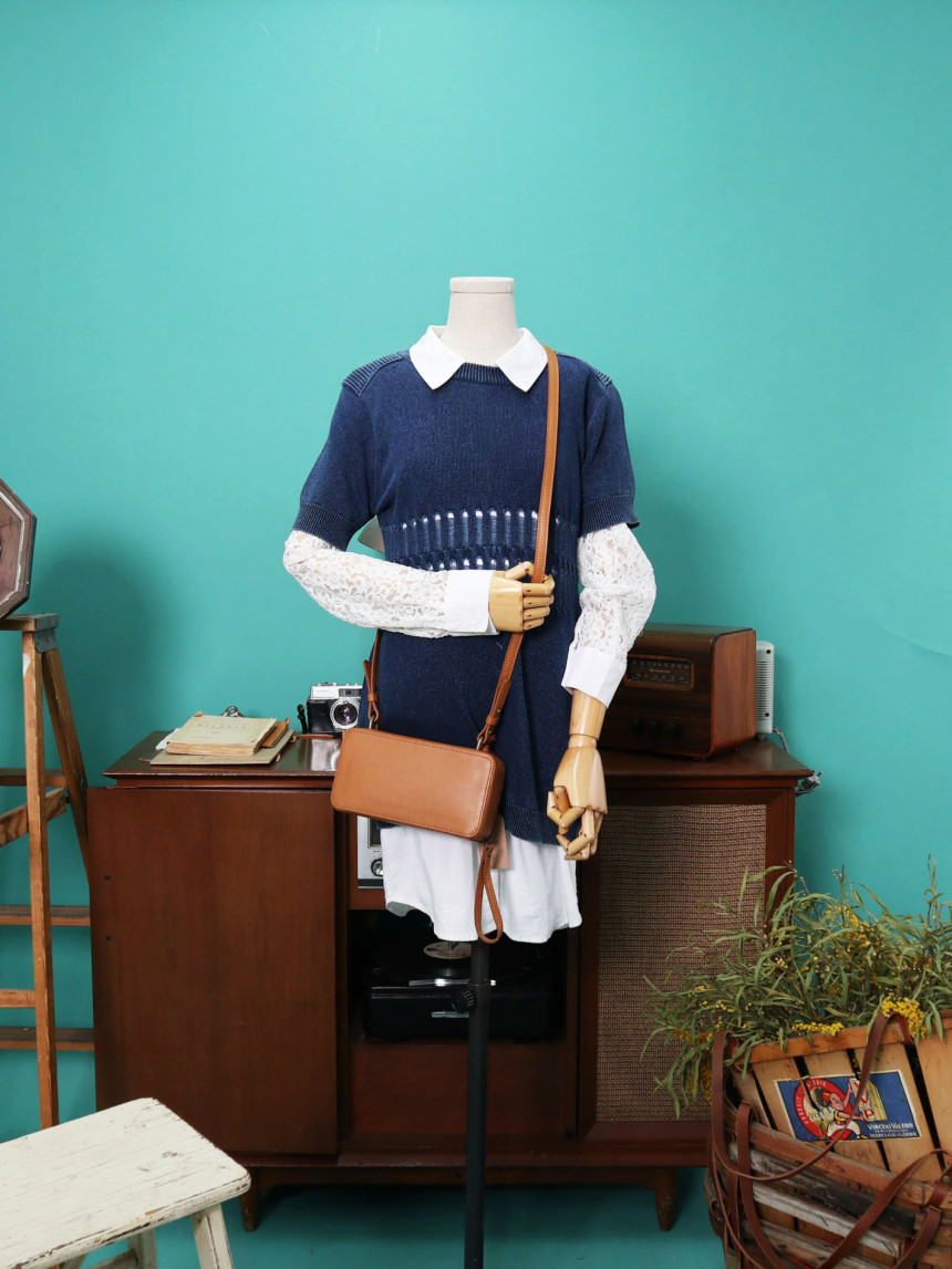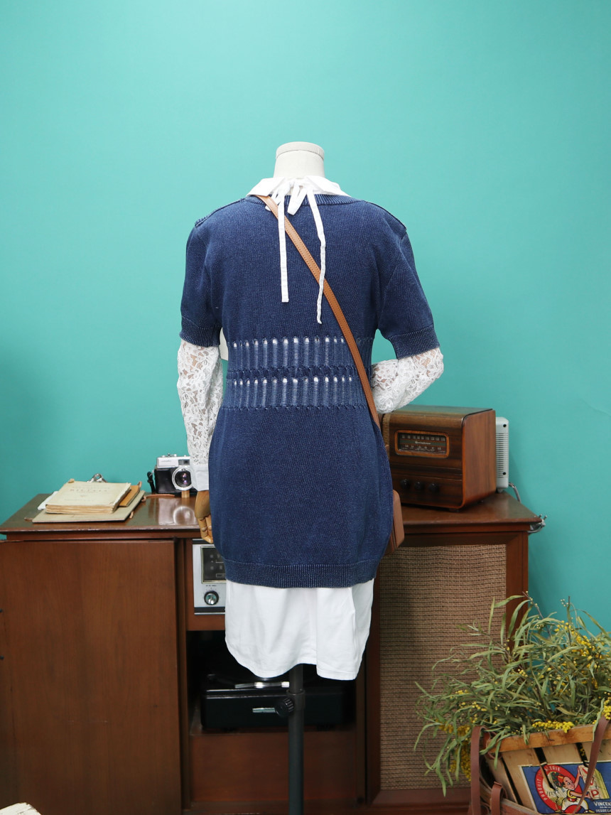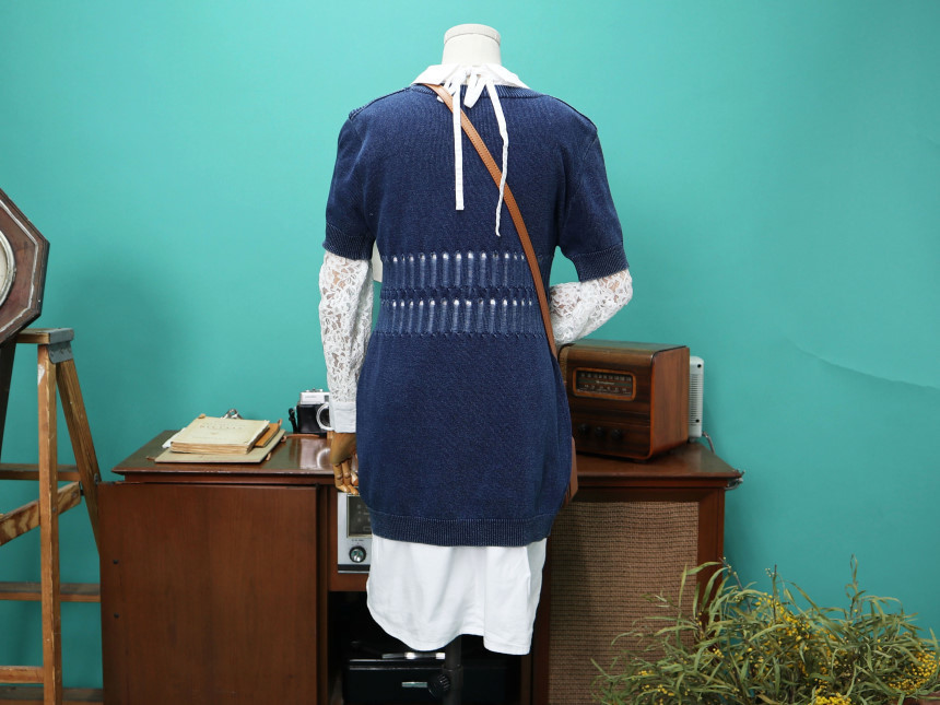 [Spring Bom] Denim Punching Detail Long Knit_ Made in KOREA