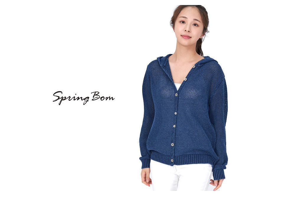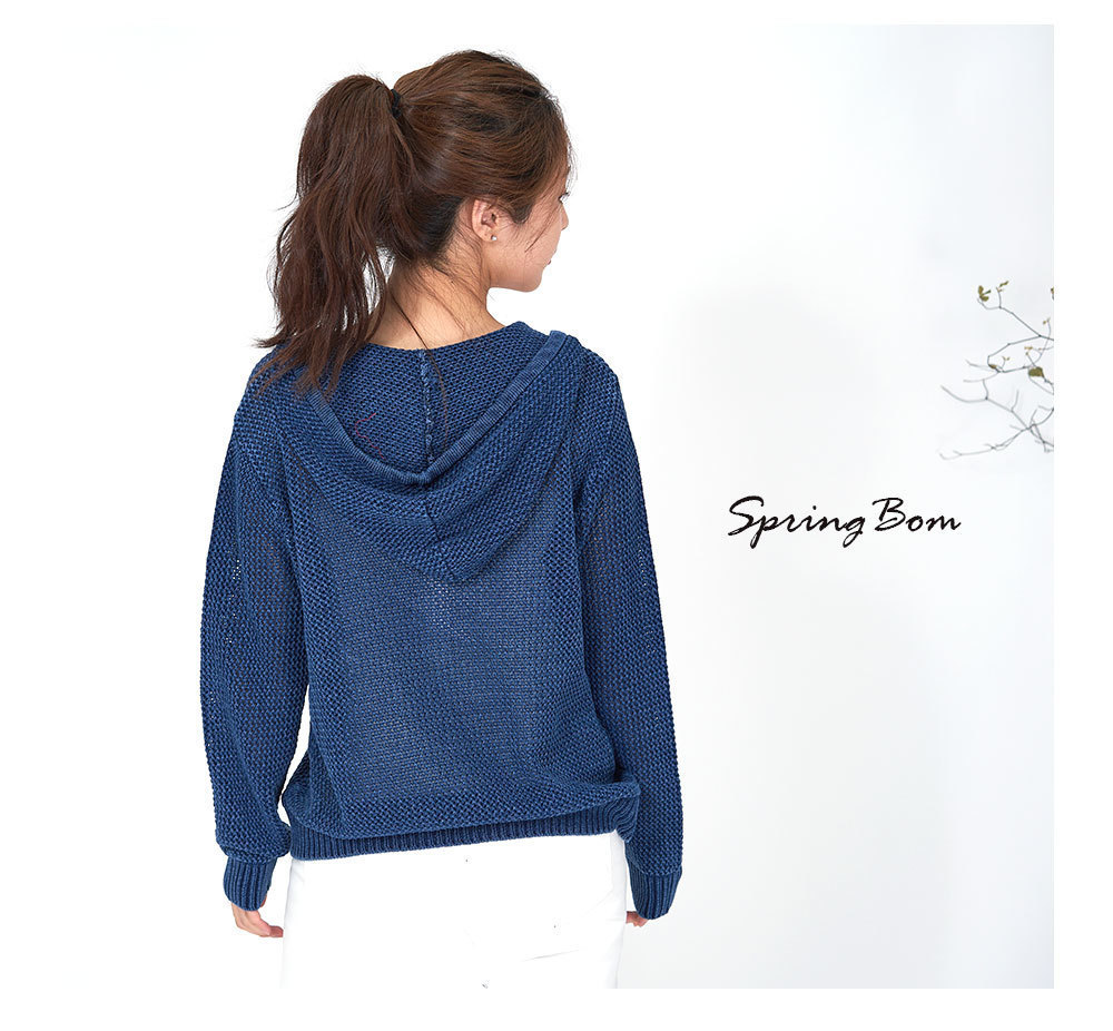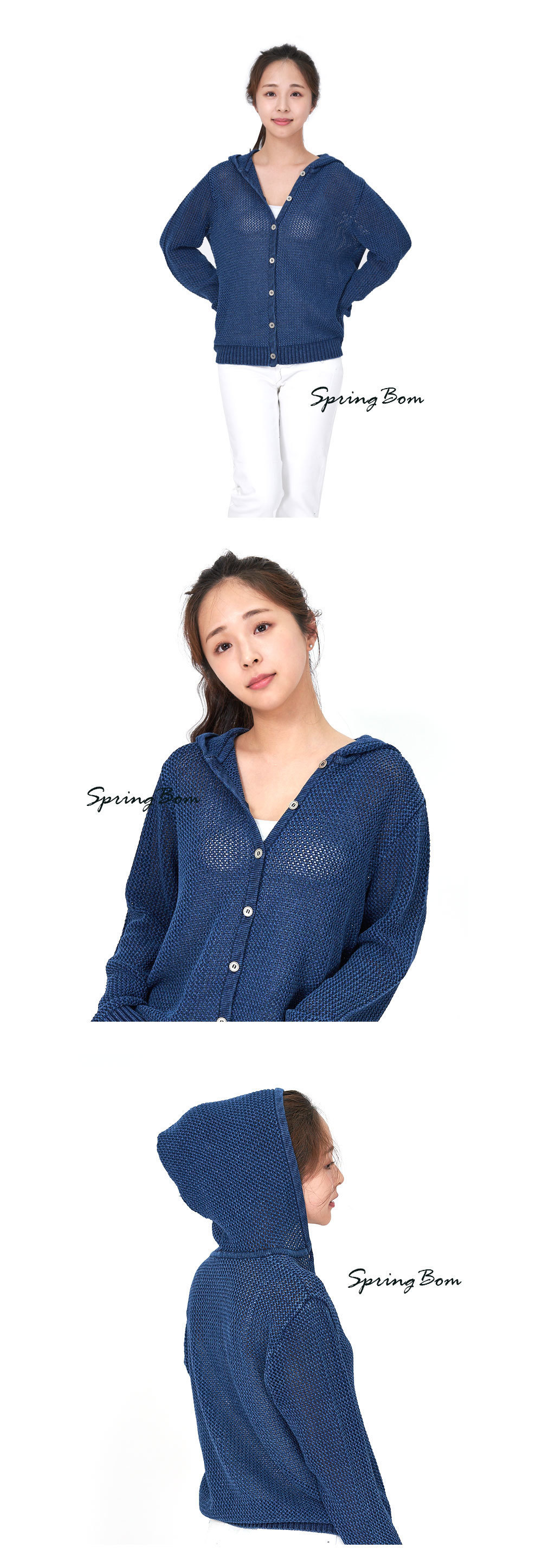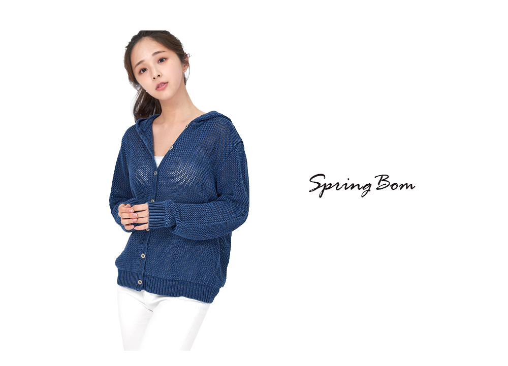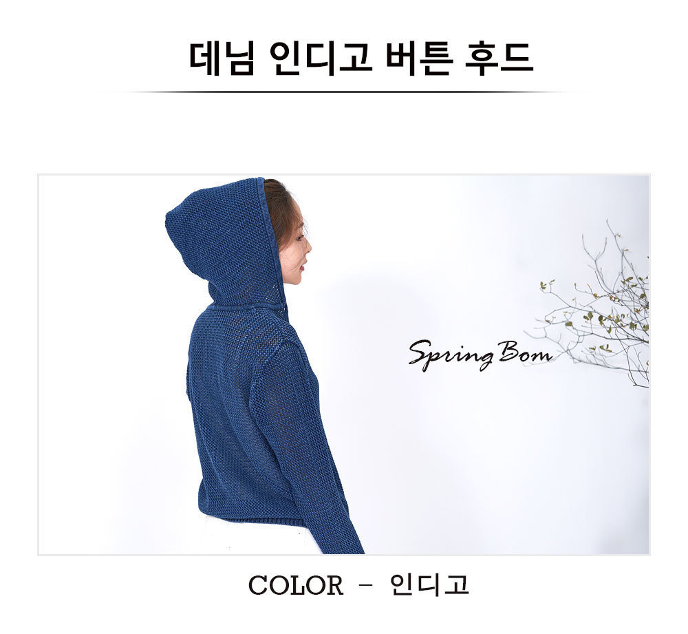 [Spring Bom] Denim Indigo Button Hood Knit_ Made in KOREA