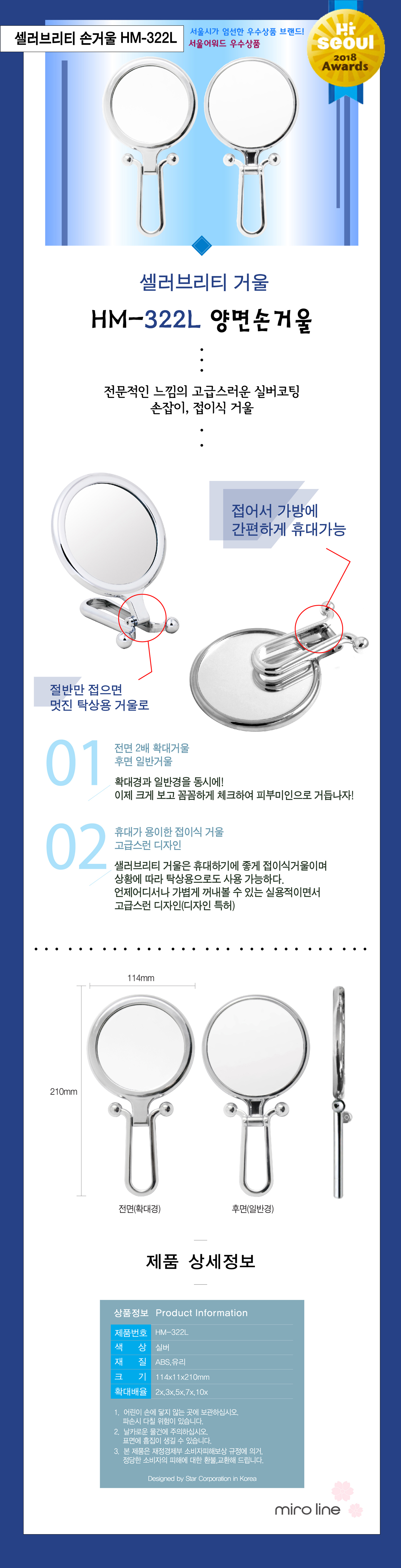 [Star Corporation] HM-322L Celebrity Hand Mirror _ Mirror, Hand Mirror, Magnifying Mirror, Double Sided Mirror, Tabletop Mirror, Flexible Mirror, Bathroom Mirror, Fashion Mirror