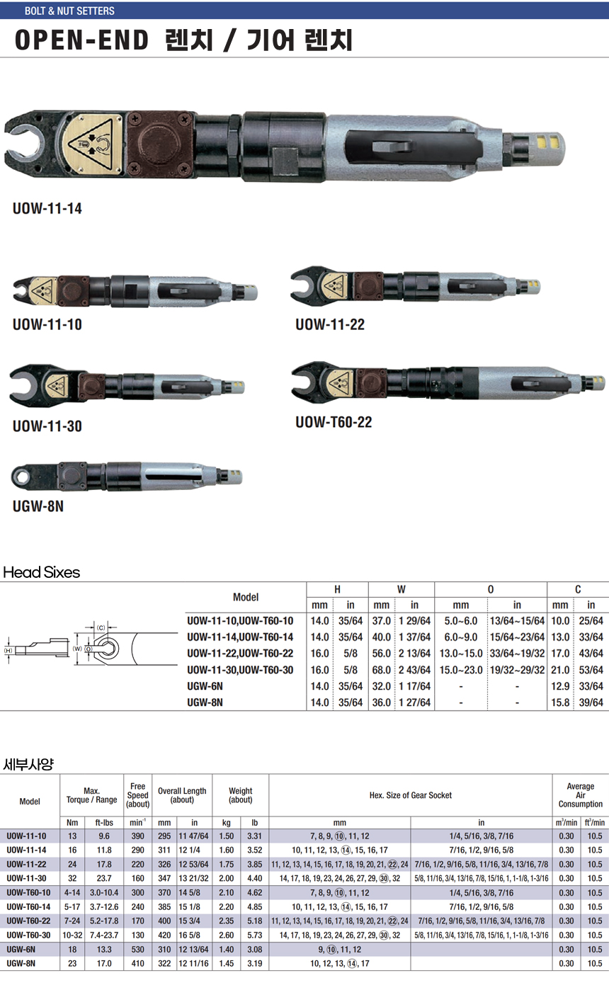 URYU AIR GEARED WRENCHES (OPEN-END) UOW-T60-30, Max. Torque 10-32Nm, 130 RPM