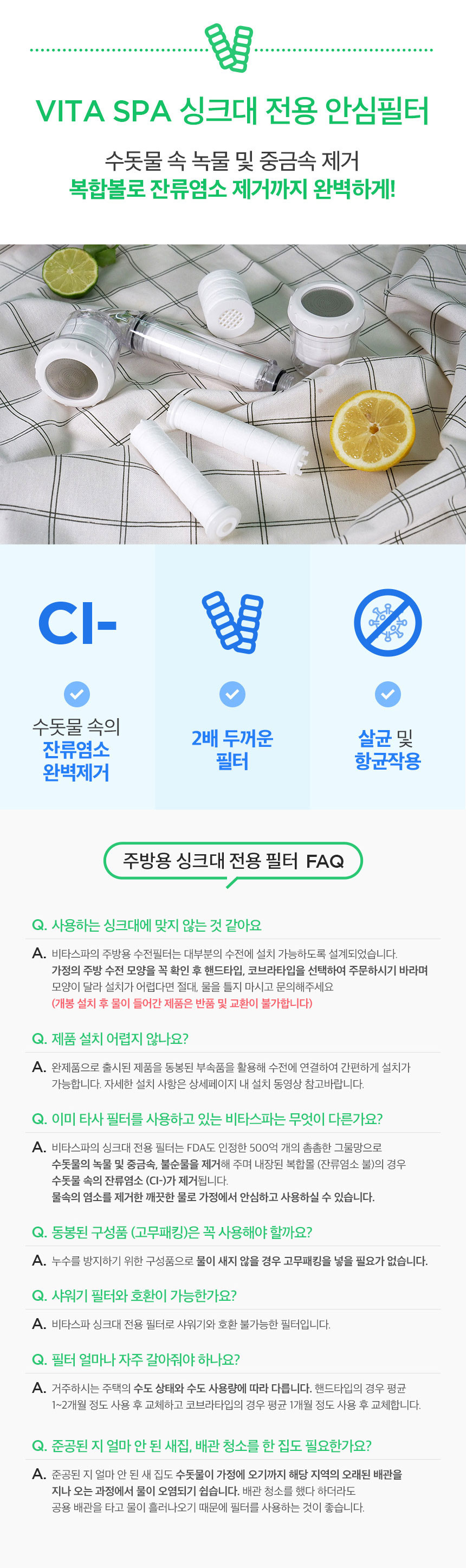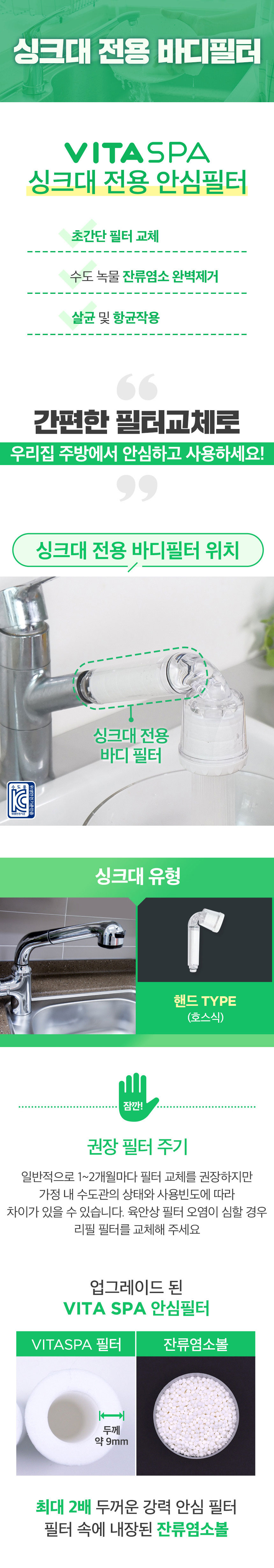 [VITASPA] The Filter for kitchen sink Refill-body*6_Sterilization 99%, Antibacterial 99%, Dual filter, Removal of residual chlorine and impurities _ Made in KOREA