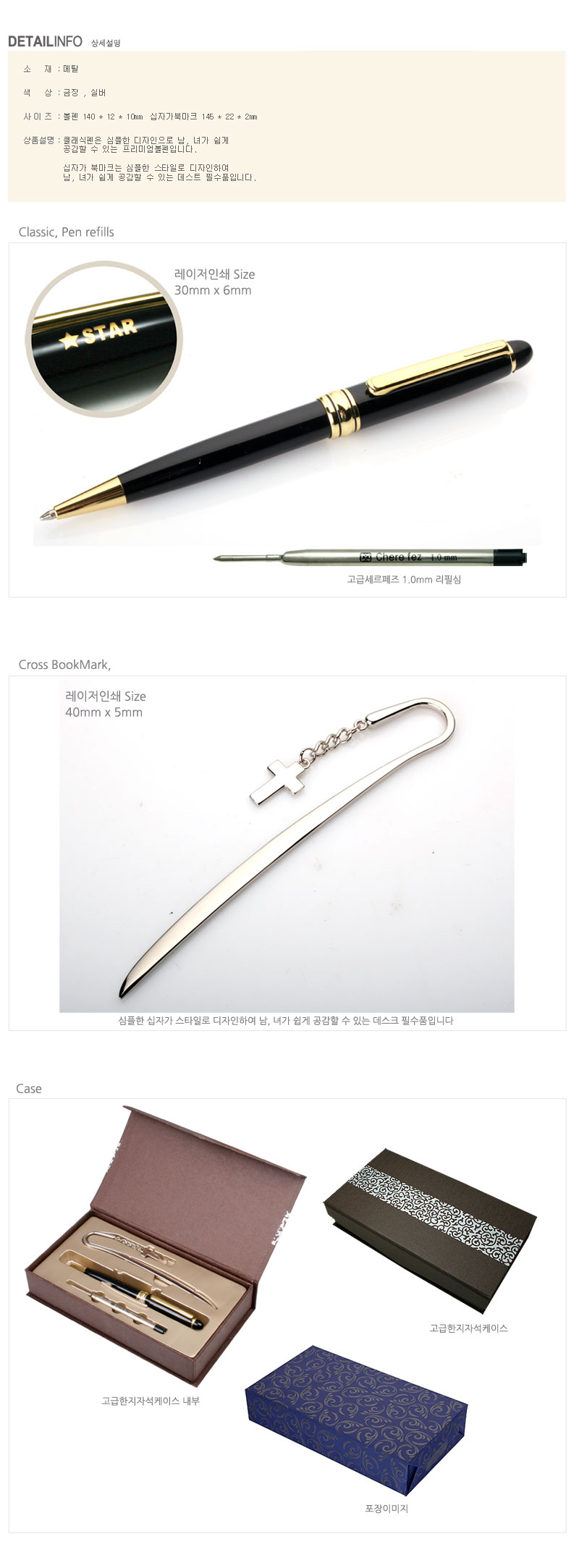 [WOOSUNG] Gift Set Metal Book Mark (Cross) + Classic Metal Pen (Gold) + Refill - Ballpoint Pen Writing Instrument Book Clip Desk Supplies - Made in Korea