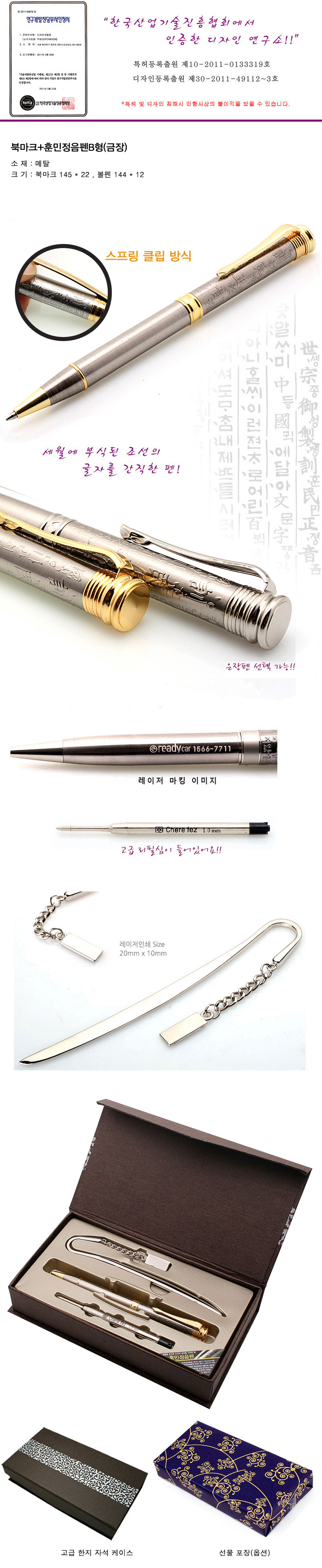 [WOOSUNG] Gift Set Metal Book Mark(Square)+Hunminjeongeum Metal Pen B Type+Refill-Ballpoint Pen Writing Instrument Book Clip Desk Supplies-Made in Korea