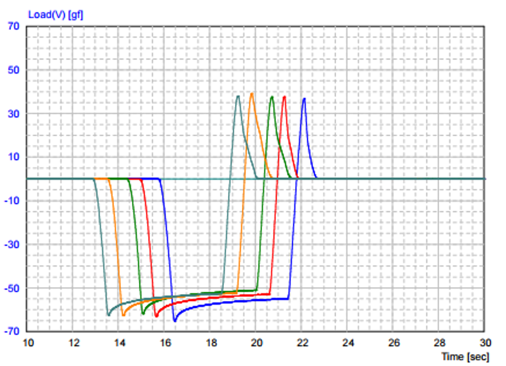 TXA™-MicroPrecision has excellent reproducibility and accuracy even in adhesion tests of less than 0.1 gf.