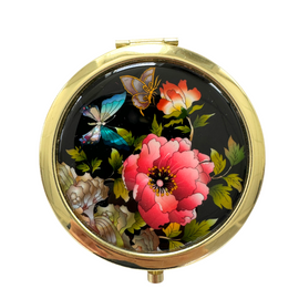 NAMIN Craft Korean Traditional Mother-of-Pearl Double-Sided Compact Mirror (70mm x 75mm), Butterfly and Chrysanthemum – Made in Korea, Authentic Handicraft & Souvenir