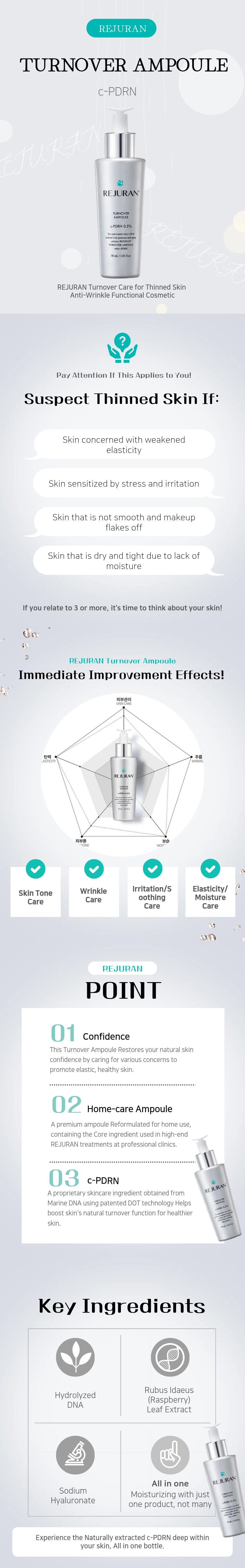REJURAN Turnover Ampoule 30ml / 1.01 fl. oz – Premium Anti-Aging Serum with c-PDRN™ 0.5% | Skin Turnover, Brightening, Wrinkle Care, Soothing & Moisturizing Ampoule _ Made in KOREA