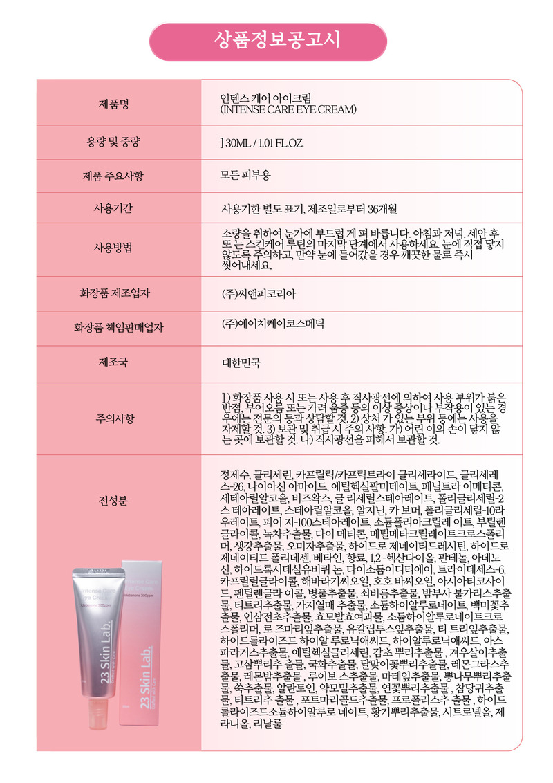 23 Skin Lab Intense Care Eye Cream 30ml Idebenone 300ppm Hyaluronic Acid for Anti-Wrinkle _ Made in KOREA