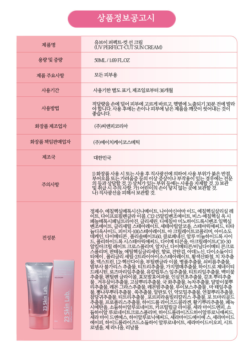 23 Skin Lab UV Perfect-Cut Sunscreen 50ml SPF50+ PA++++ Triple Functional CICA Care _ Made in KOREA