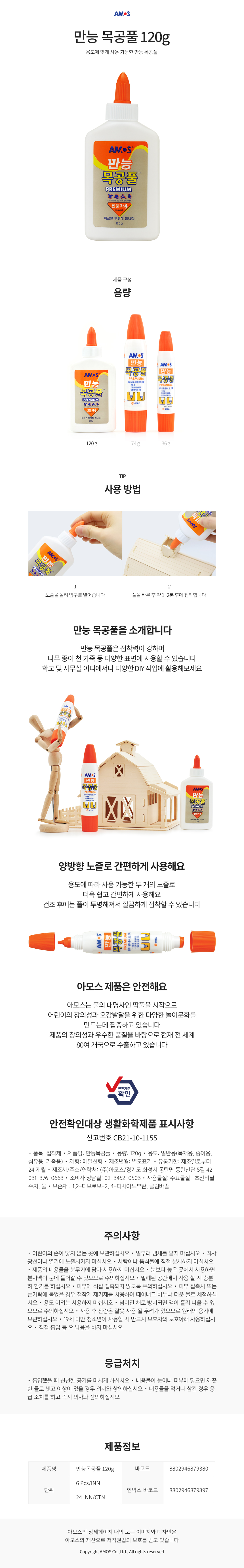 AMOS Professional Multi-Purpose Wood Glue 120g Strong Adhesive for Wood Paper Fabric Leather DIY Made in Korea