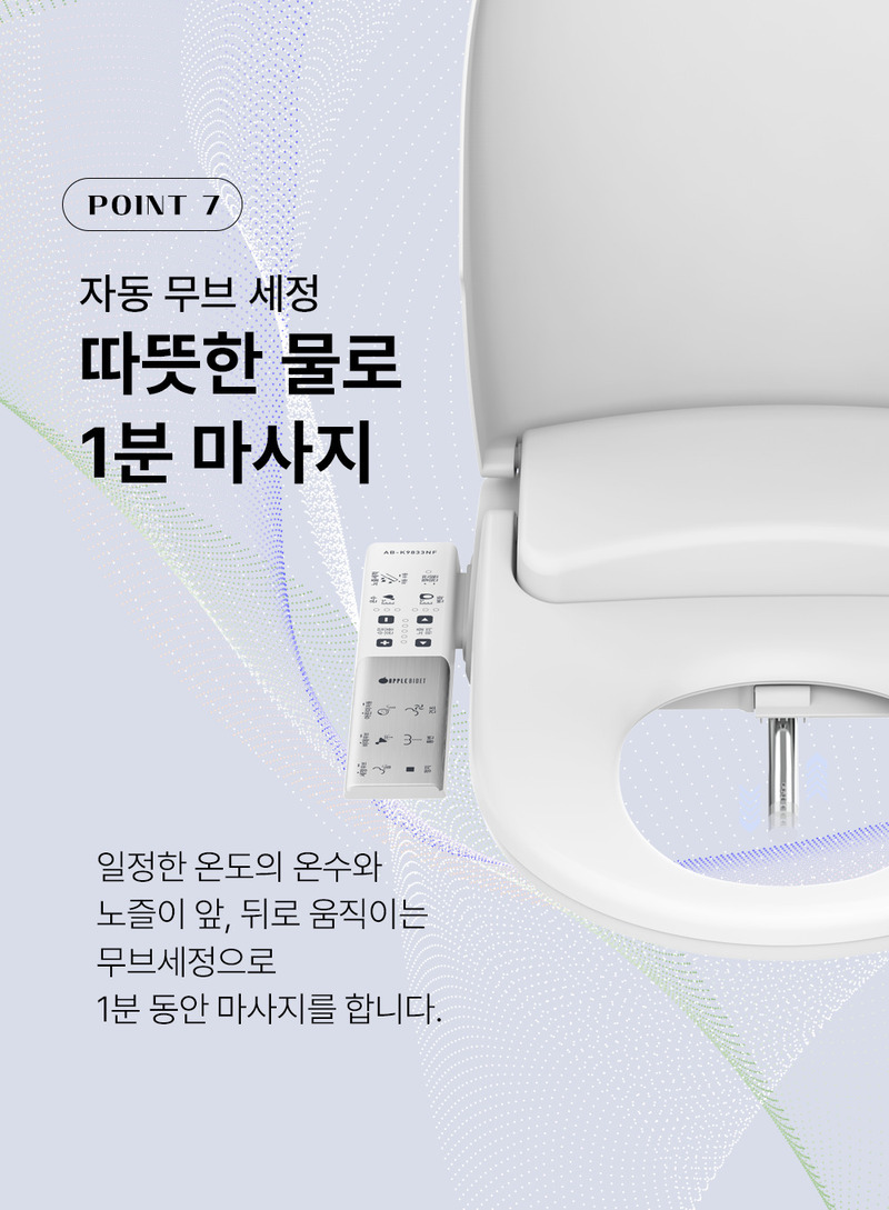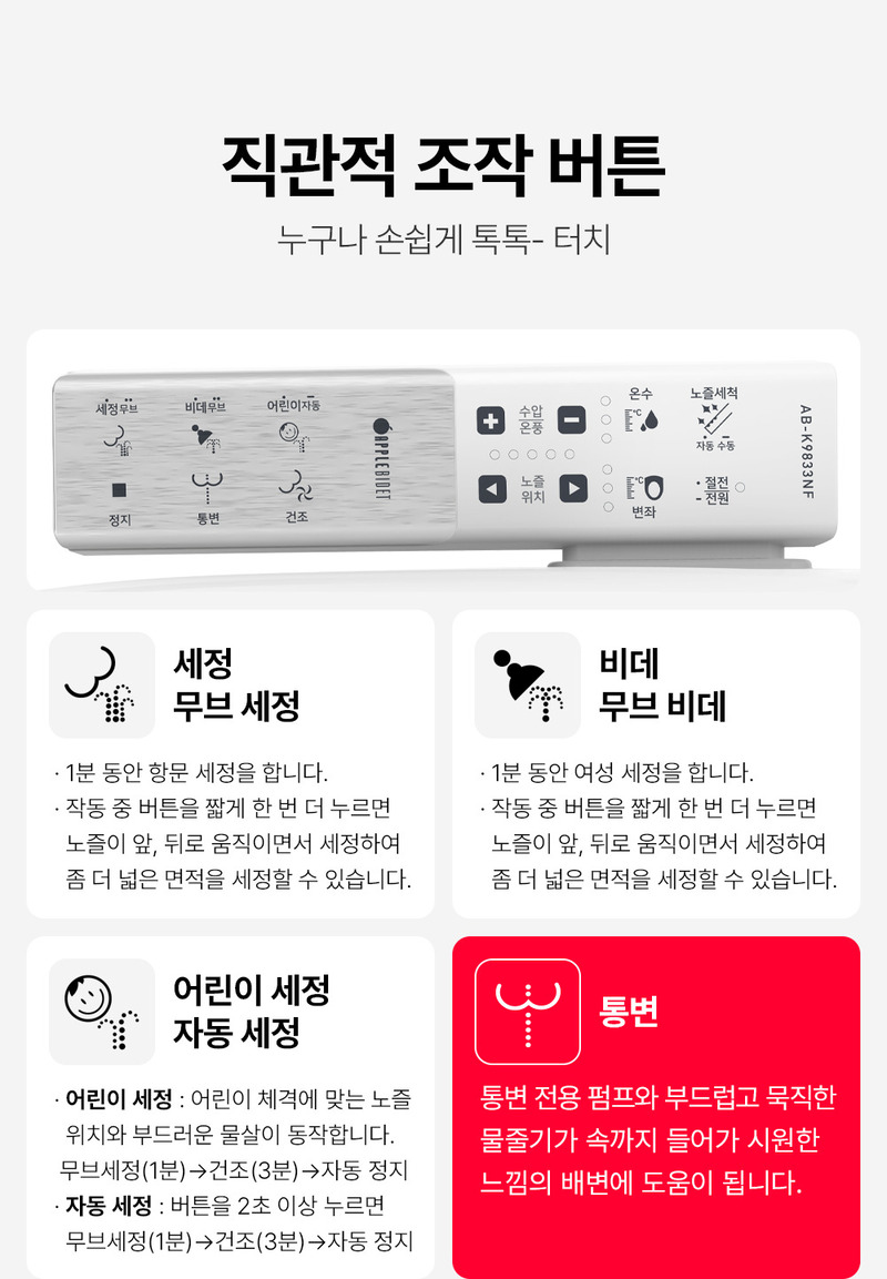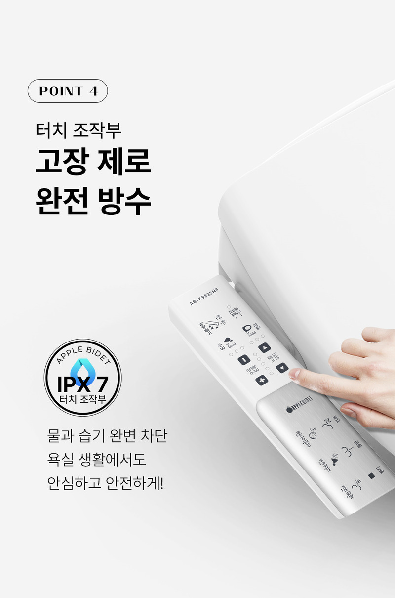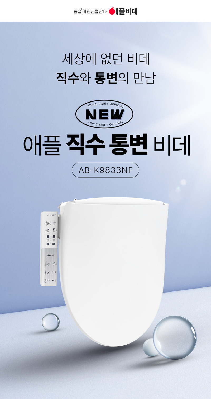 Apple Bidet AB-K9833NF, Stainless Steel Nozzle, Waterproof(IPX5~7), Continuous Warm Water System - Made in Korea
