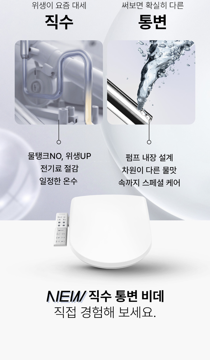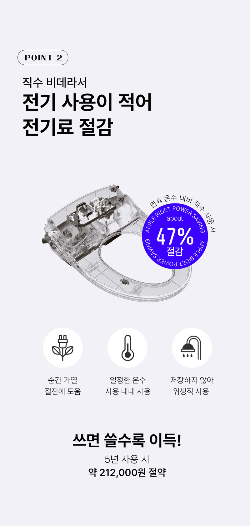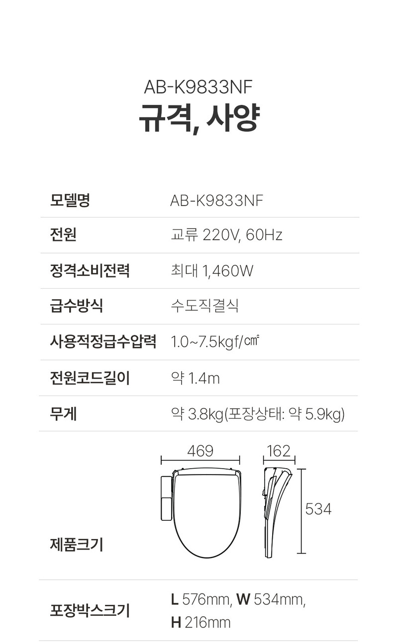 Apple Bidet AB-K9833NF, Stainless Steel Nozzle, Waterproof(IPX5~7), Continuous Warm Water System - Made in Korea