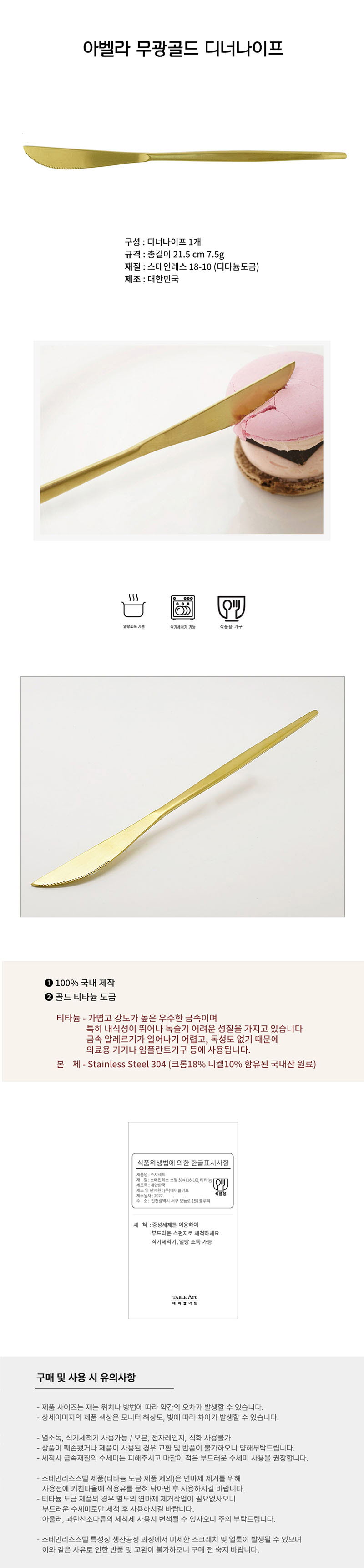 AVELLA Matte Gold Dinner Knife