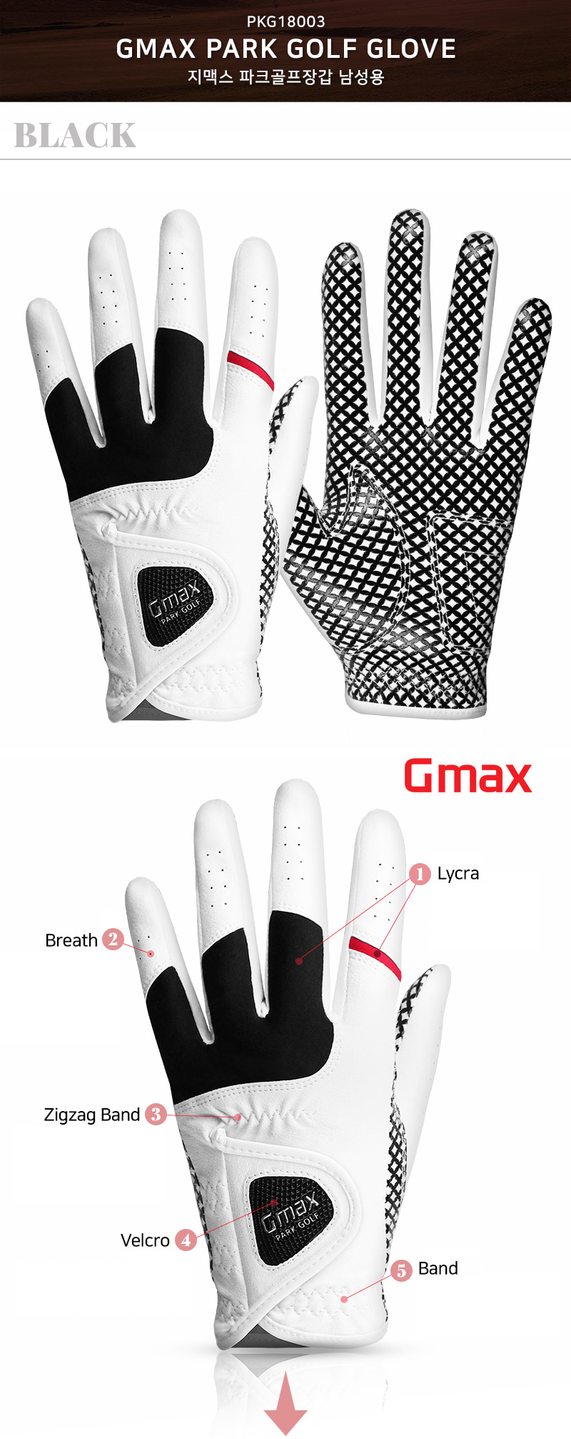 [BY_Glove] GMAX PARK GOLF GLOVE FOR MEN, BOTH HANDS _ PKG18003_ Synthetic Leather Gloves, Lycra, Silicone coating, Non-Slip