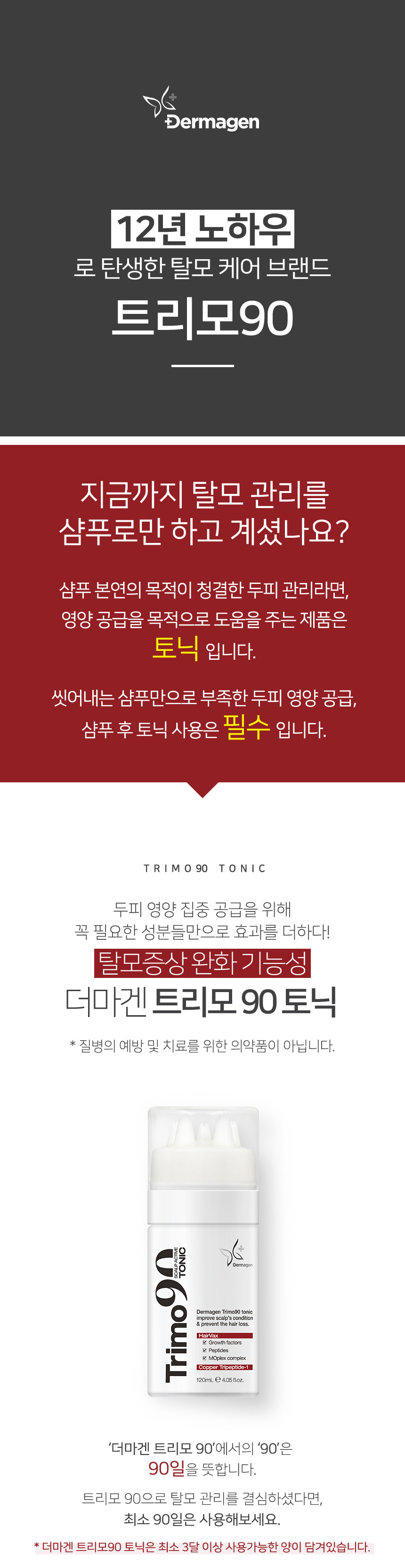 DERMAGEN Trimo90 Scalp Shampoo & Tonic is designed to nourish and revitalize the scalp, complementing the cleansing benefits of shampoo. While shampoo removes impurities, this tonic delivers targeted nutrients directly to the scalp for systematic scalp and hair care.
