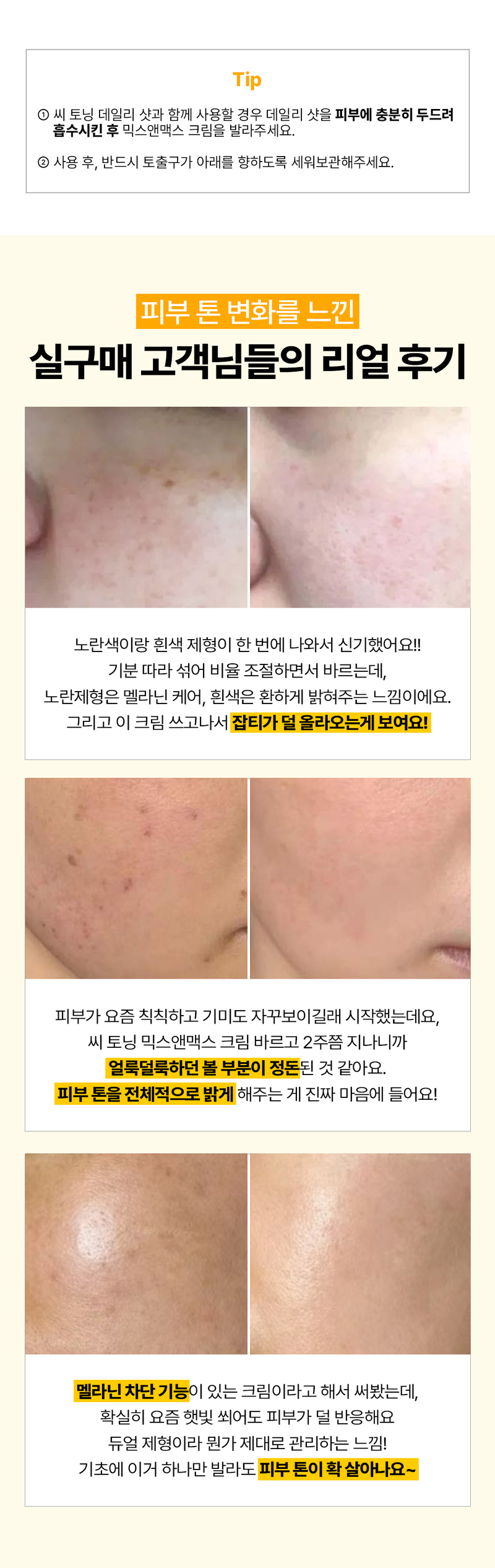 1. When using together with Sea Toning Daily Shot, apply the Daily Shot first and gently pat it into the skin until fully absorbed. Then apply the Mix & Mix Cream.