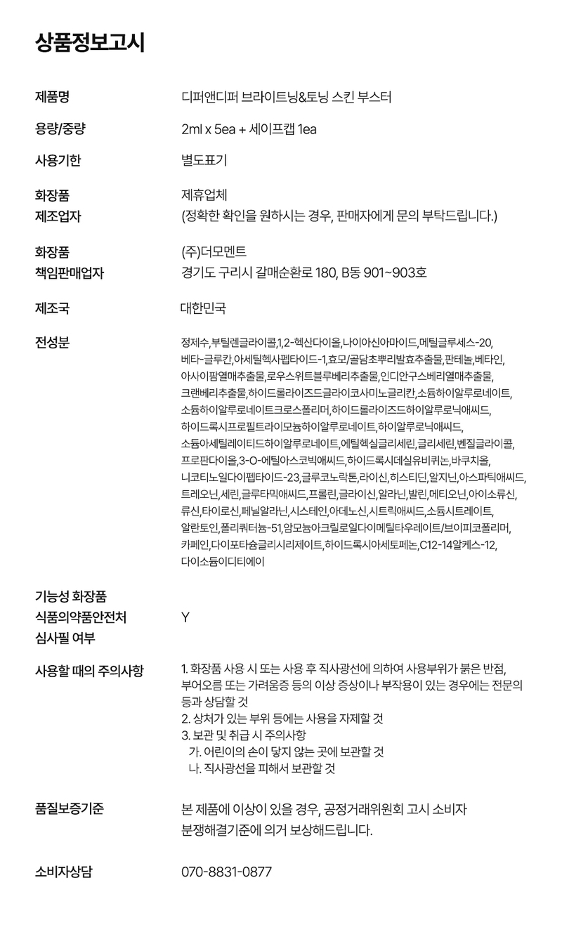 DIFFER&DEEPER Brightening and Toning Skin Booster (2ml * 5ea ) for Dark Brown and Yellow Skin Tone Care _ Made in Korea