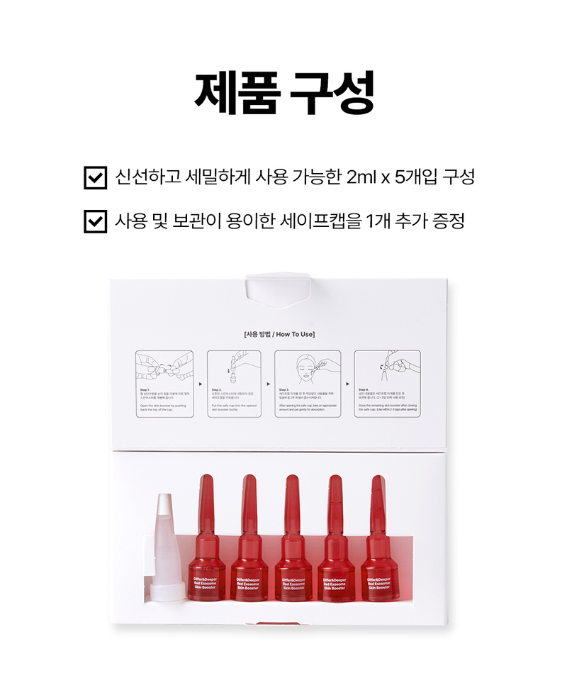 DIFFER&DEEPER Red Exosome Skin Booster Starter Pack (2ml * 5ea) for Pore Tightening Anti-Aging and Skin Barrier Repair _ Made in Korea