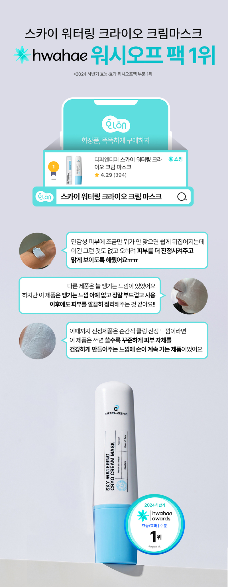 DIFFER&DEEPER Sky Watering Cryo Cream Mask with French Thalasso Water for Cooling Soothing and Skin Barrier Strengthening _ Made in Korea