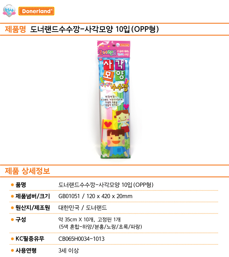 Donerland Square Colored Corn Starch Sticks | 10 Pcs Set with Fixing Pins | DIY Modeling Straws | High-Density Craft Sticks | Made in Korea