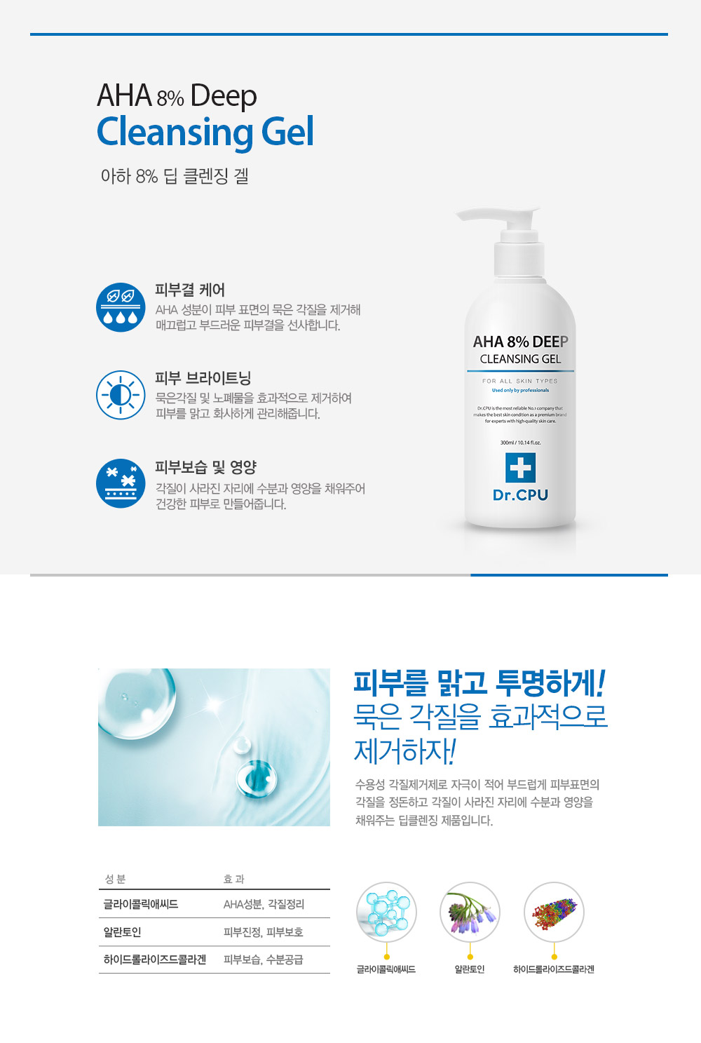 Dr. CPU AHA 8% Deep Cleansing Gel 300ml _ A deep cleansing solution for smooth and clear skin texture