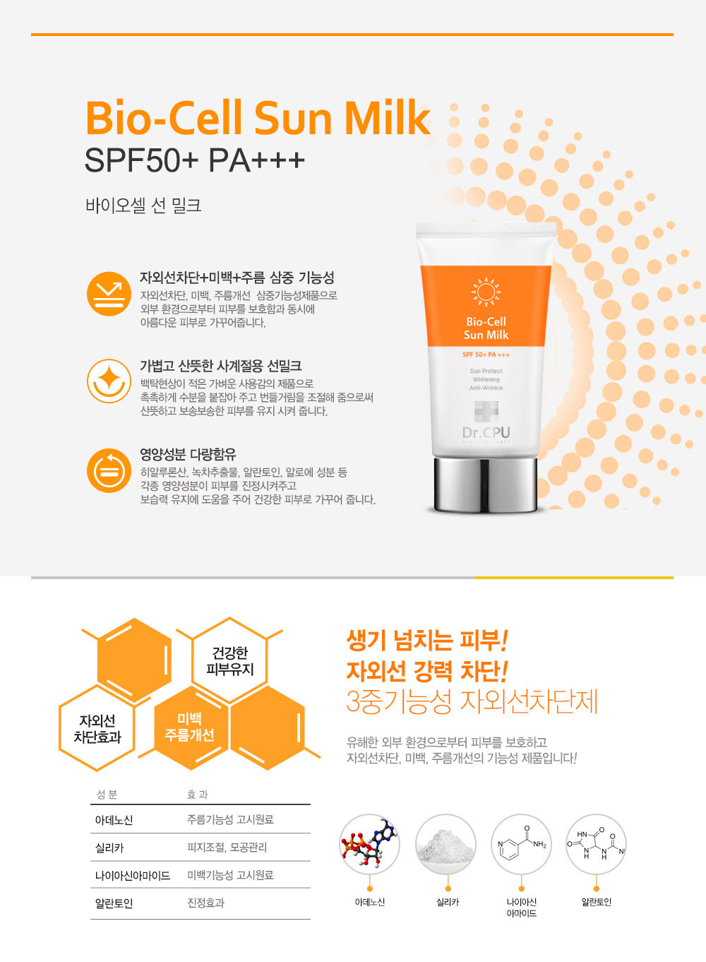Dr. CPU Bio Cell Sun Milk 60ml SPF50+ PA+++ _ Triple-Function Sun Care for UV Protection, Brightening & Anti-Wrinkle Care_ Made in Korea