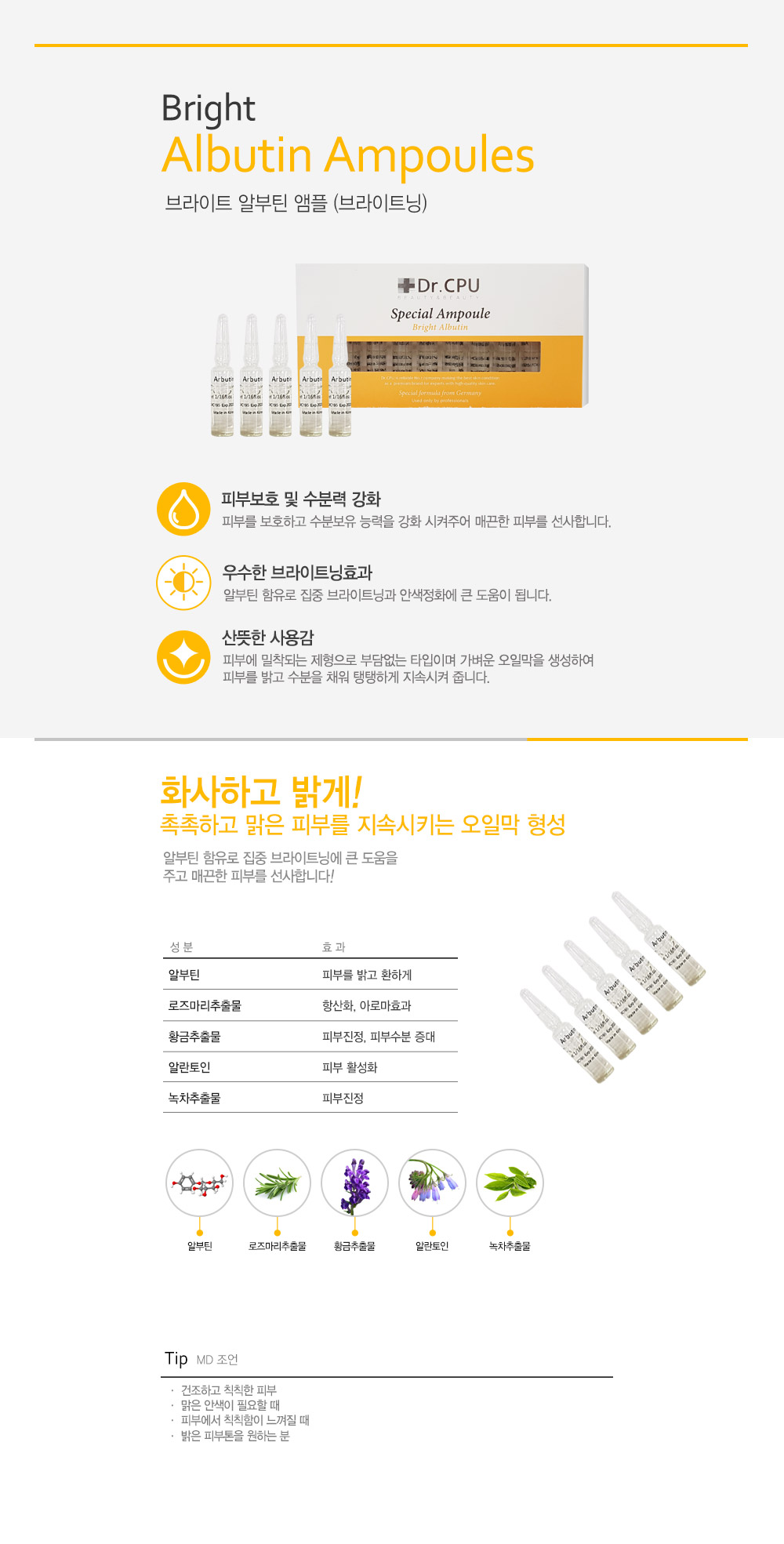 Dr. CPU Bright Arbutin Special Ampoule (20 Vials) _ High-Concentration Whitening Ampoule for Clear and Radiant Skin _ Made in Korea