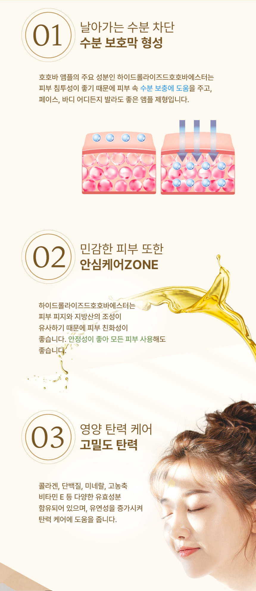 - Intensive Hydration & Nourishment : Hydrolyzed jojoba esters deeply penetrate the skin to deliver long-lasting moisture and nourishment.- Skin-Friendly Formula : Mimics the structure of natural skin sebum, making it gentle and suitable for sensitive skin.- Balanced Oil-Water Care : Helps control both dryness and excess oil, maintaining optimal skin balance.- Improves Skin Elasticity : Enriched with collagen, minerals, and concentrated vitamin E to nourish the skin and enhance flexibility.- Exfoliation & Radiance : Promotes smooth skin texture and a dewy, luminous complexion.