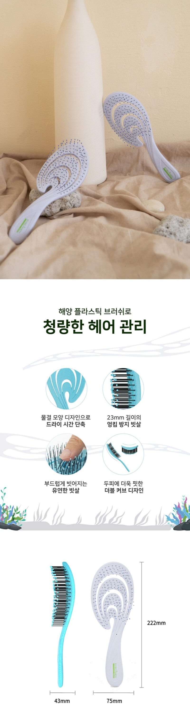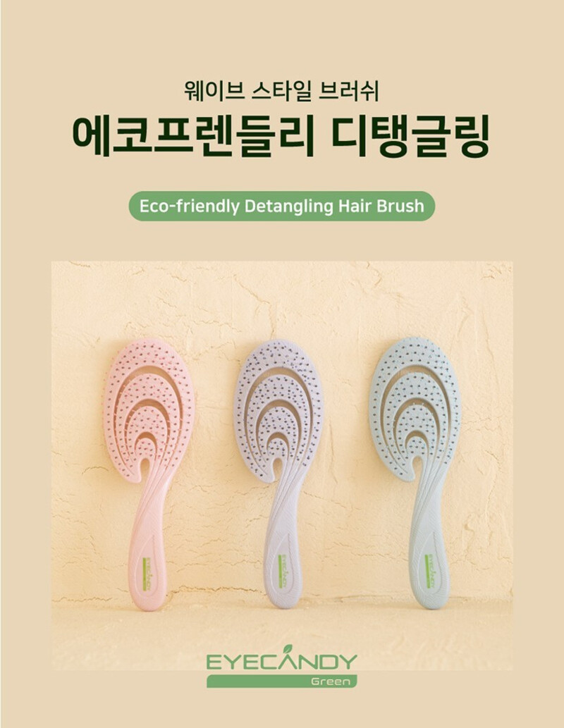 EyeCandy Eco-Friendly Detangling Hair Brush (GRS Certified), Recycled Ocean Plastic, Patented Double-Curve Design for Scalp Massage & Fast Drying _ Made in Korea