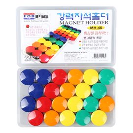 [FOBWORLD] Mini Round Magnet Holder 15mm 40Pcs _ Notice Board/Planning Magnets, Round Plastic Covered Magnetic Buttons, Refrigerator Whiteboard Magnets for School Office Home _ Made in Korea