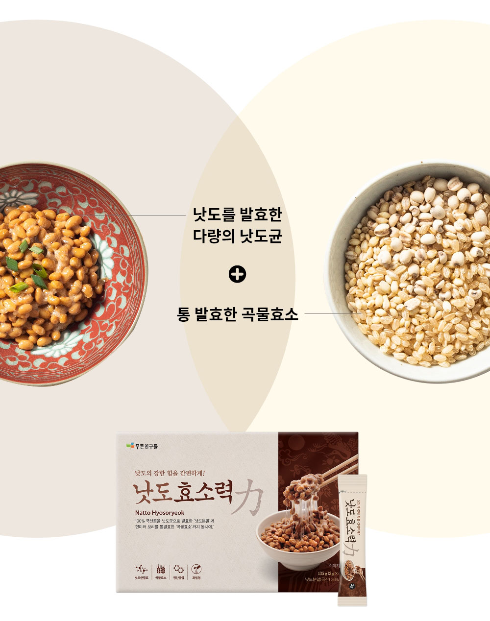 Among the various enzymes of natdo, natdo kinase is an enzyme that occurs during the fermentation process of soybeans and is contained in the sticky thread-like part of natdo and plays a role in dissolving the debris in the body to help circulate in the body.