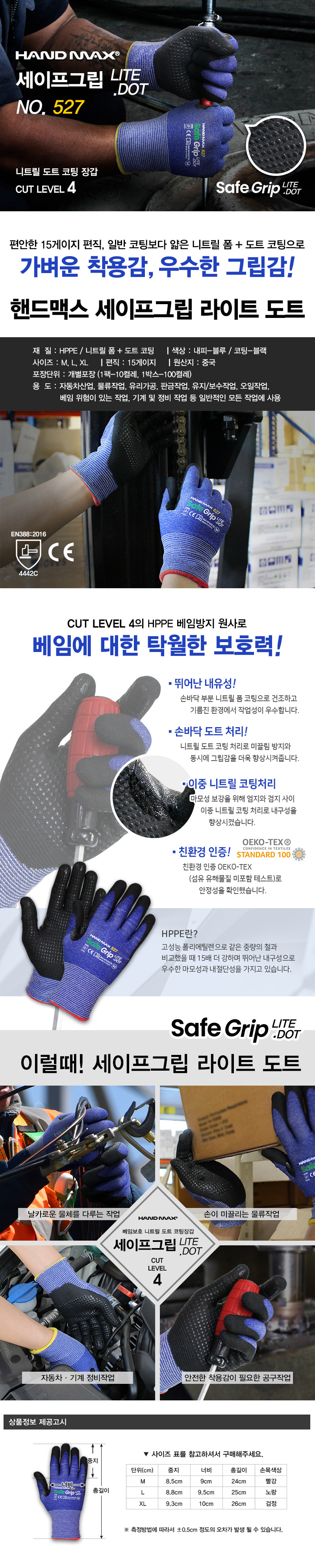 HANDMAX SafeGrip Light Dot NO.527, Cut level 4 Cut prevention, polyethylene, Nitrile foam coating, HPPE, 15G