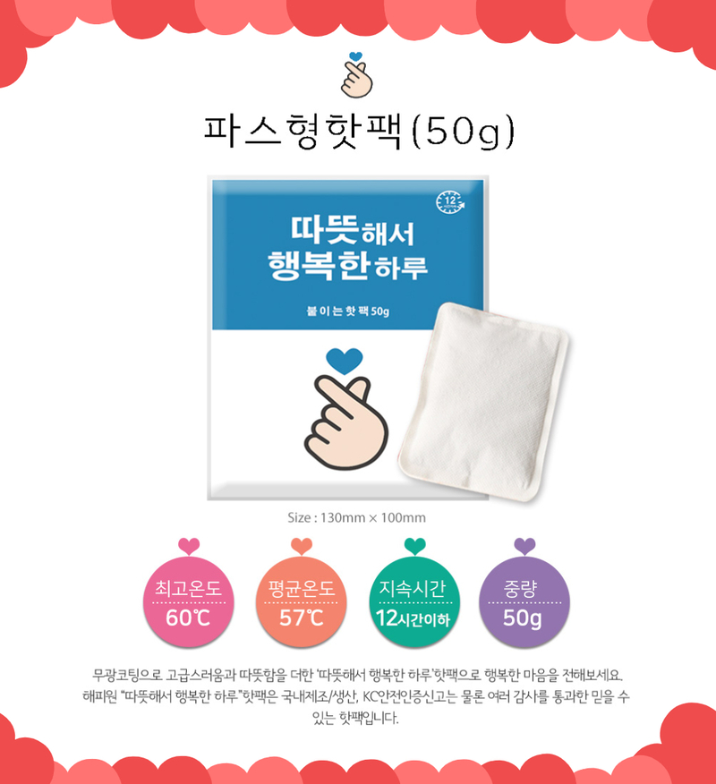 Stay warm effortlessly with our premium Korean-made adhesive hand warmers. These 50g patch-type heaters are designed to be attached to your clothing, providing targeted warmth to your back, shoulders, or abdomen during chilly days. Featuring a high-quality adhesive that stays in place without damaging your clothes, these patches are the perfect discreet solution for staying cozy all day long.
