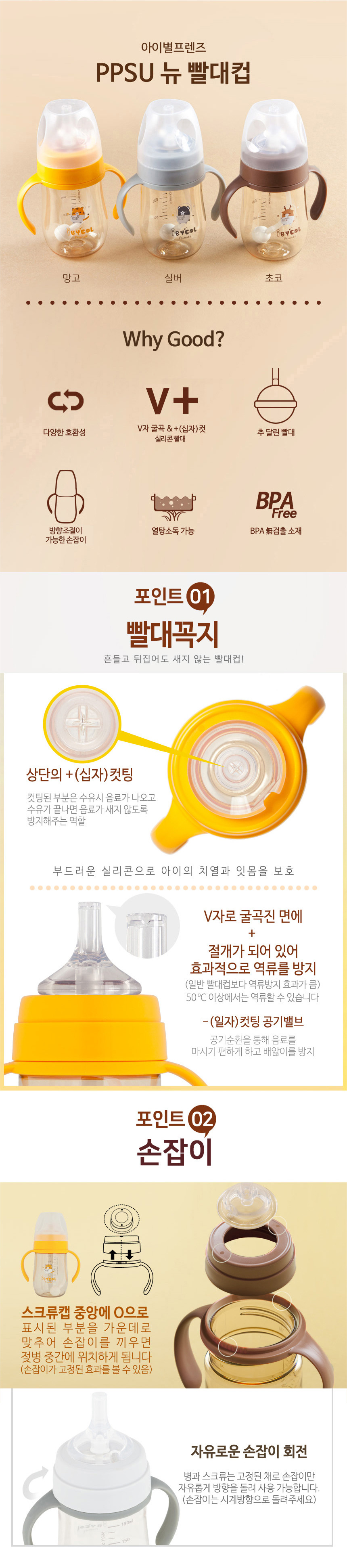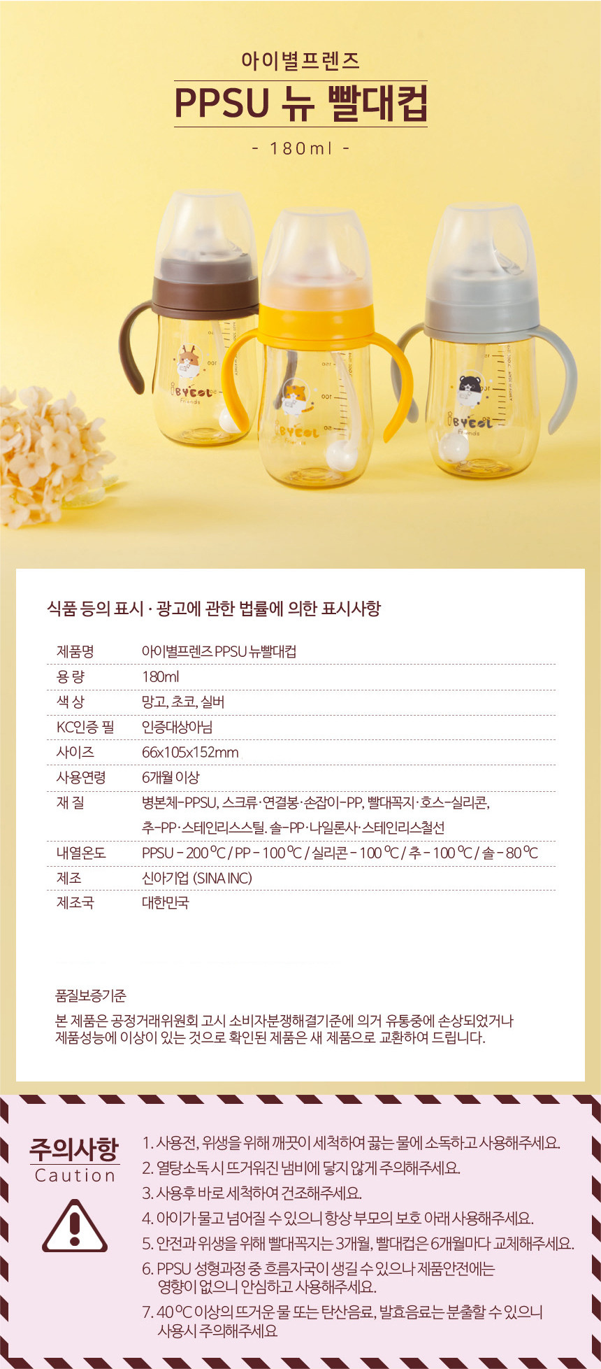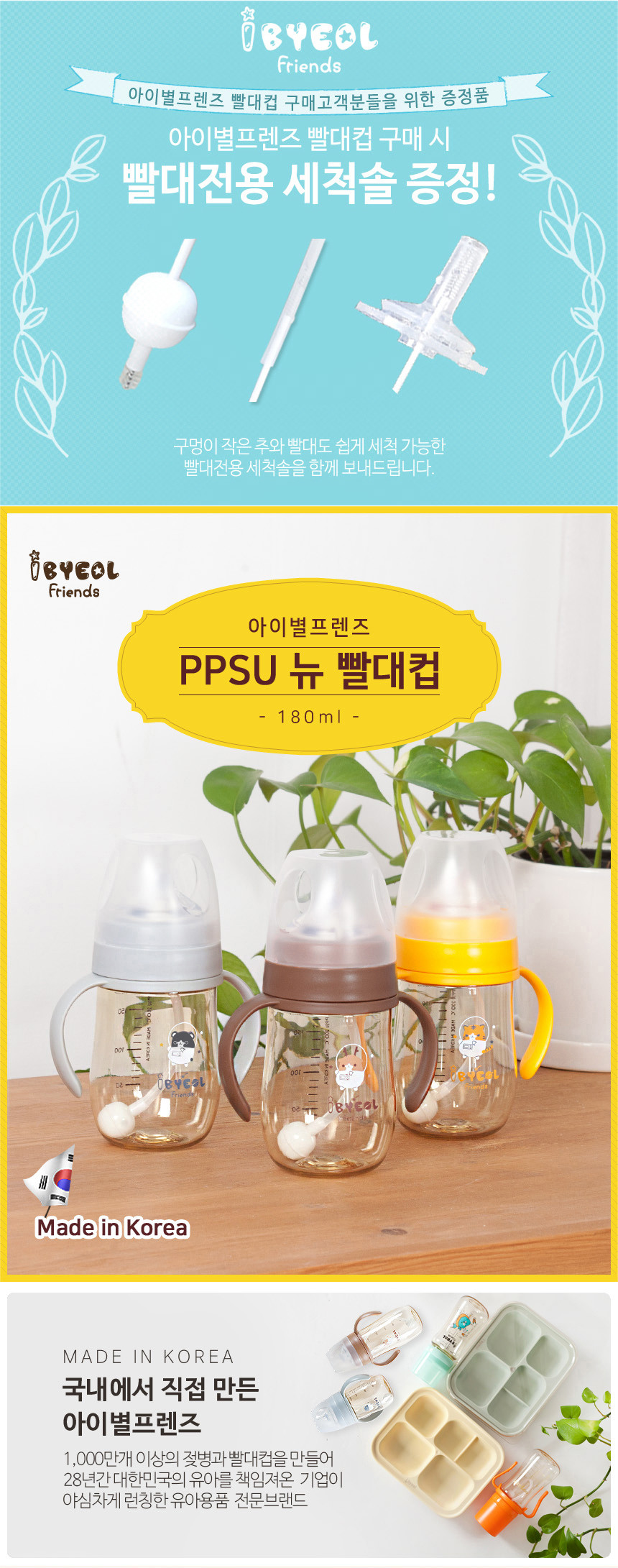IBYEOL Friends New Premium PPSU Weighted Straw Cup 180ml for Toddlers Anti-Colic Leak-Proof BPA-Free Safe SILVER _ Made in KOREA