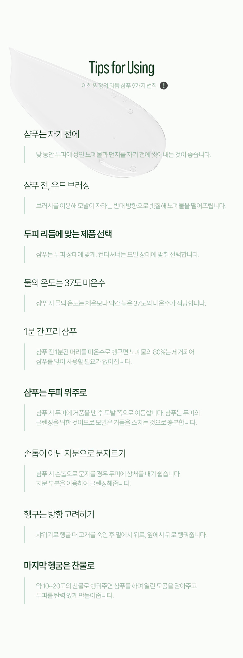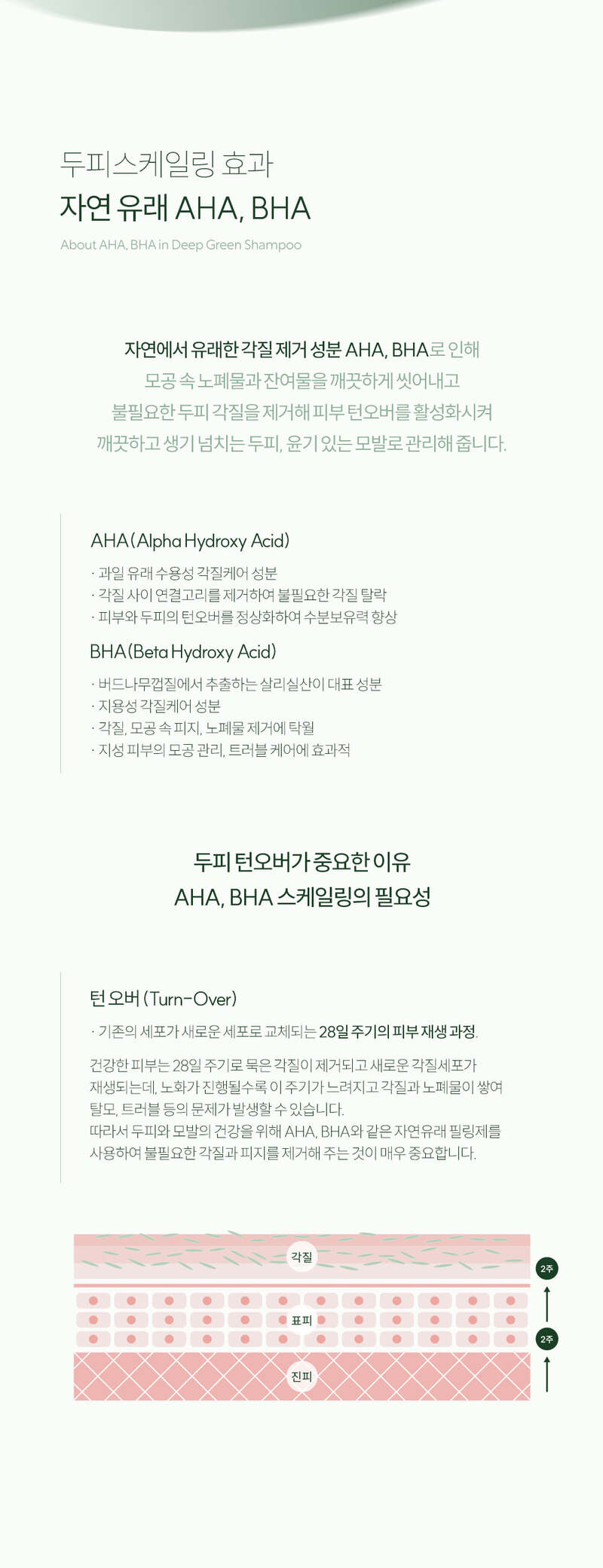 - Natural AHA & BHA: Provides a scalp scaling effect by removing dead skin cells and sebum to normalize the skin turn-over cycle.