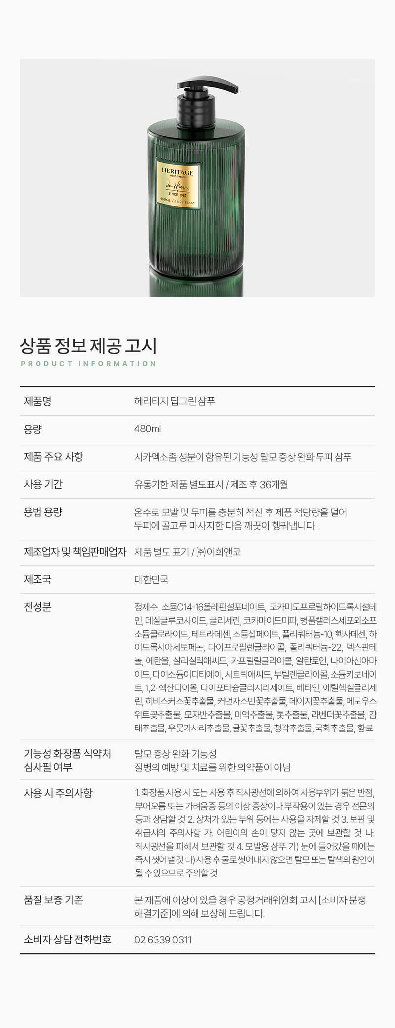 Ihee Heritage Deep Green Shampoo 480ml for Anti Hair Loss Care with Cica Exosome and Jeju Botanical Extracts _ Made in Korea